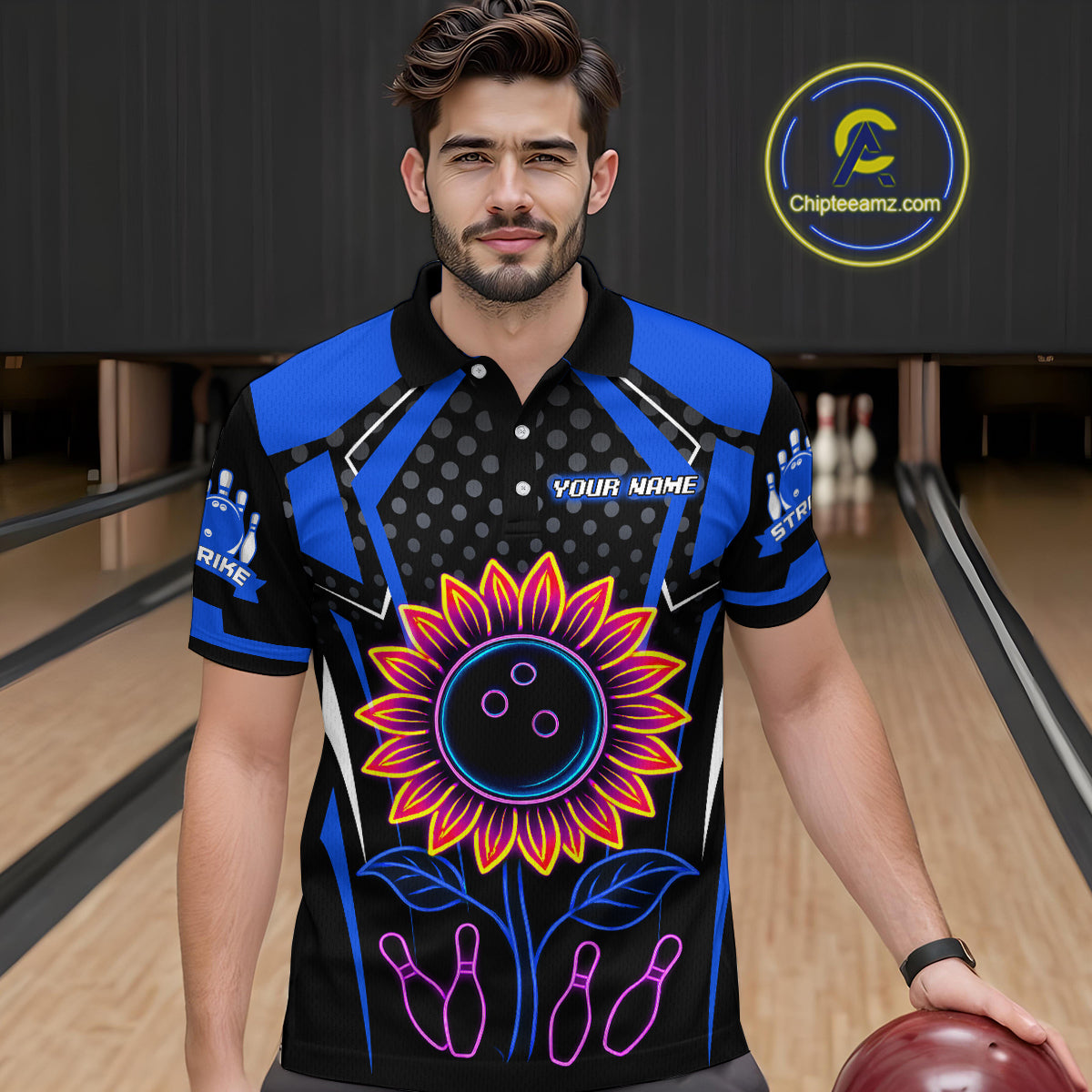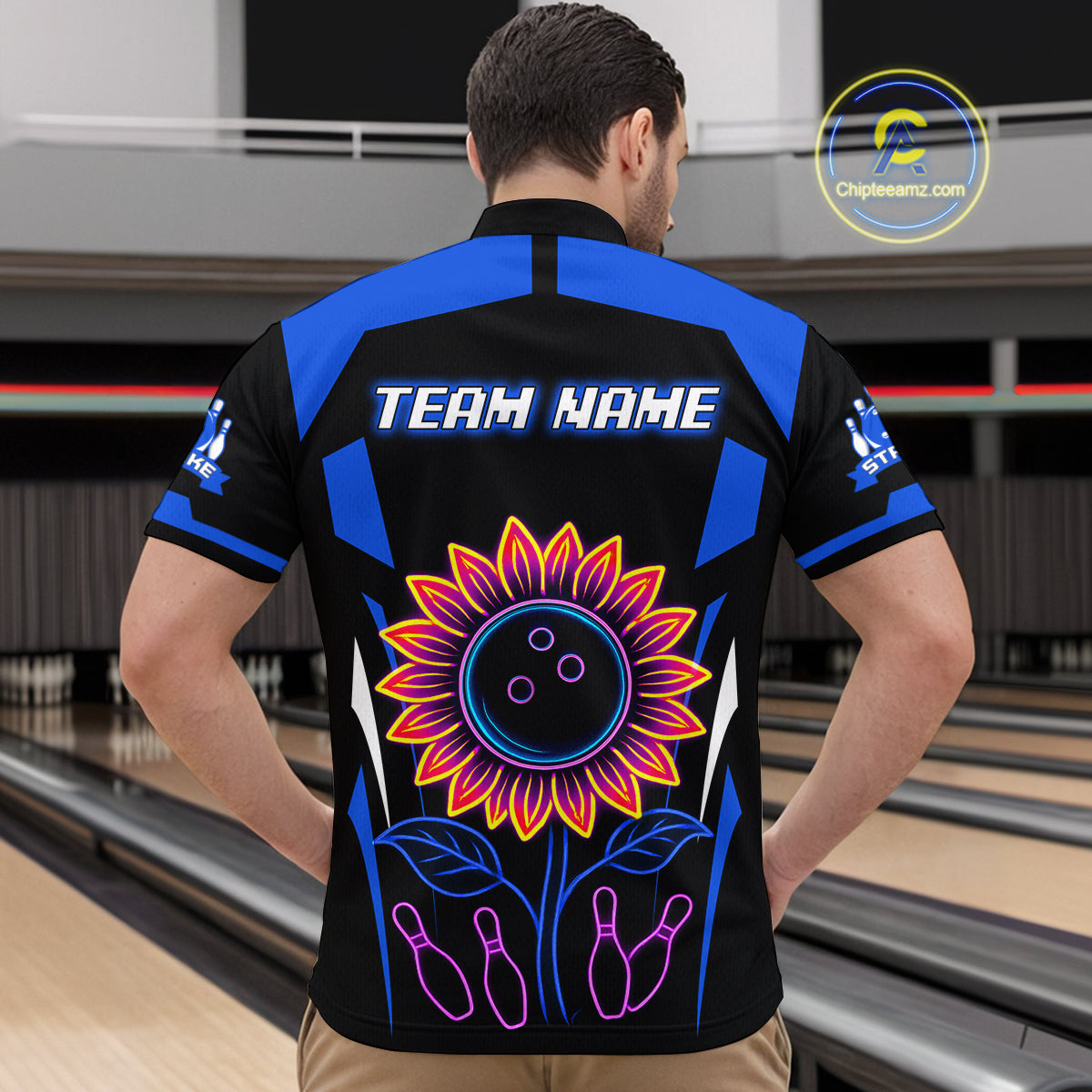 Blue Neon Lightning Sunflower Bowling Shirt for Men Custom Team Bowling Polo Bowling Jersey QZT771