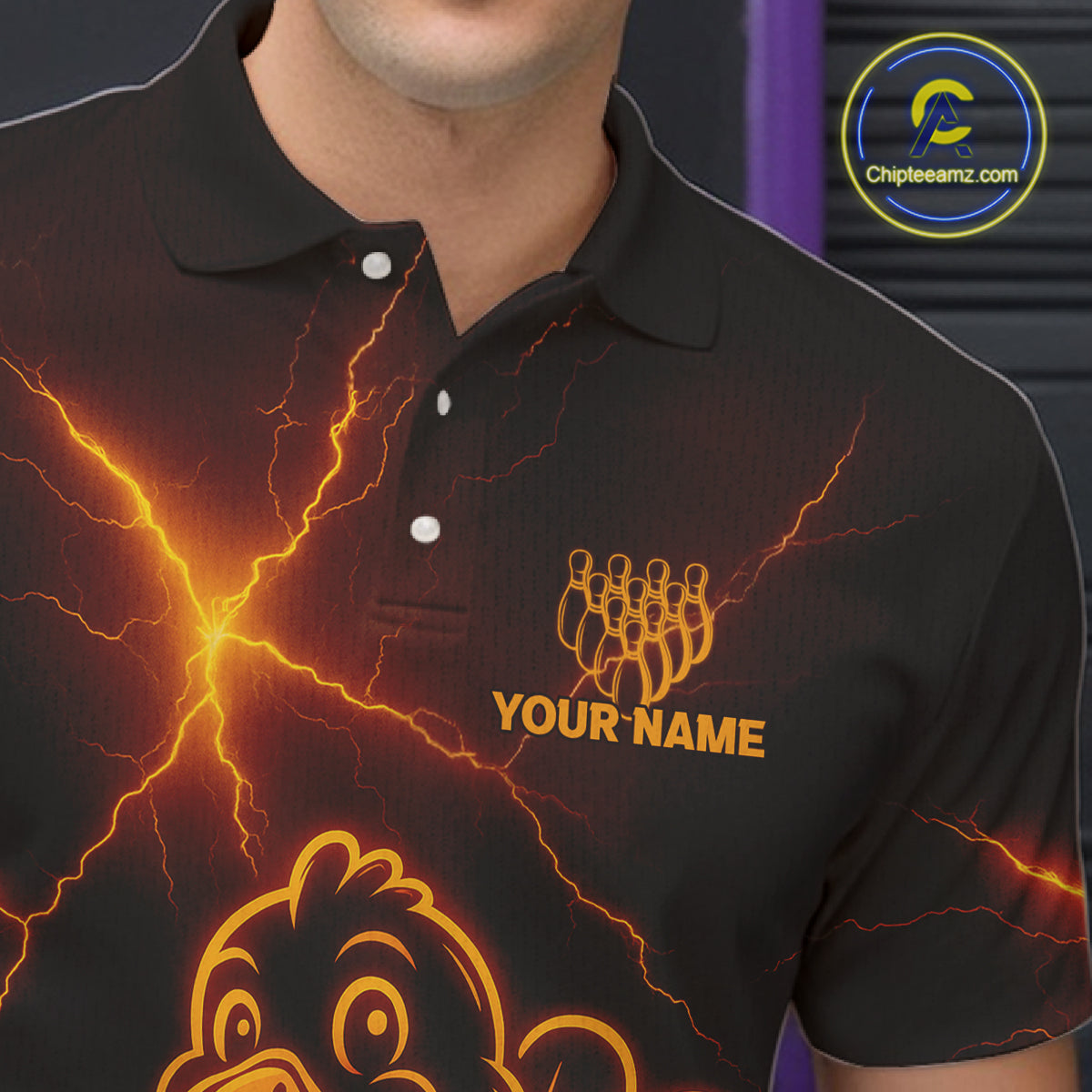 Orange Lightning Thunder Turkey Bowling Shirts For Men Custom Thanksgiving Team Bowling Jerseys NQS10682