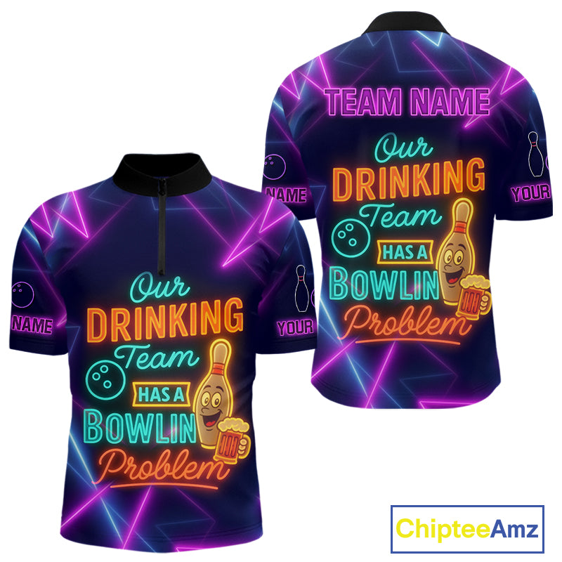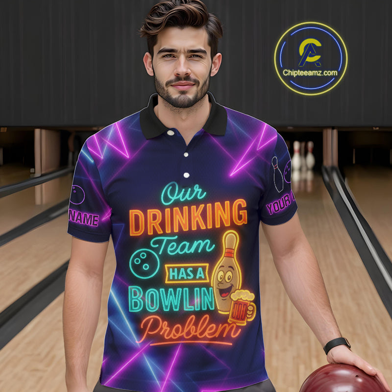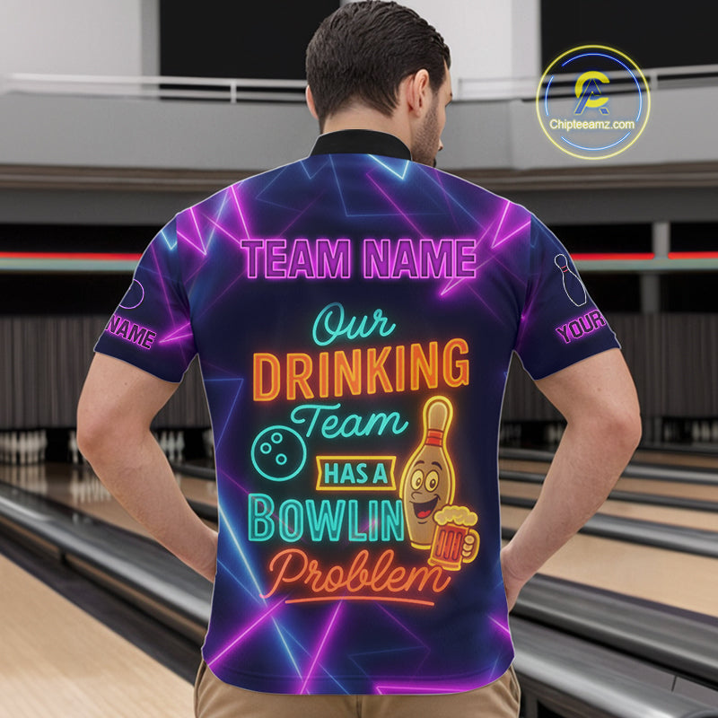 Our Drinking Team has a bowling problem Custom colorful neon funny bowling and beer shirts for men NQS11126
