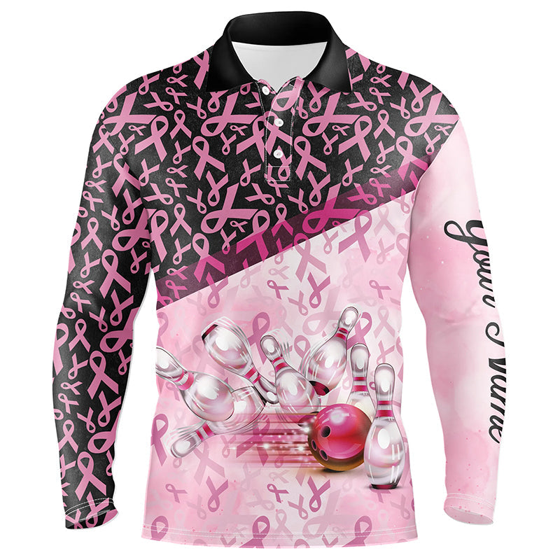 Pink and black ribbon pattern Bowling Shirt For Men Custom Breast Cancer Awareness bowling jerseys NQS7949