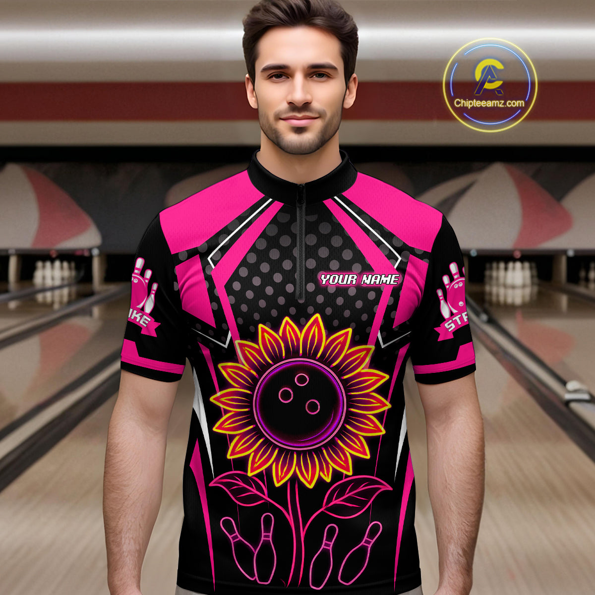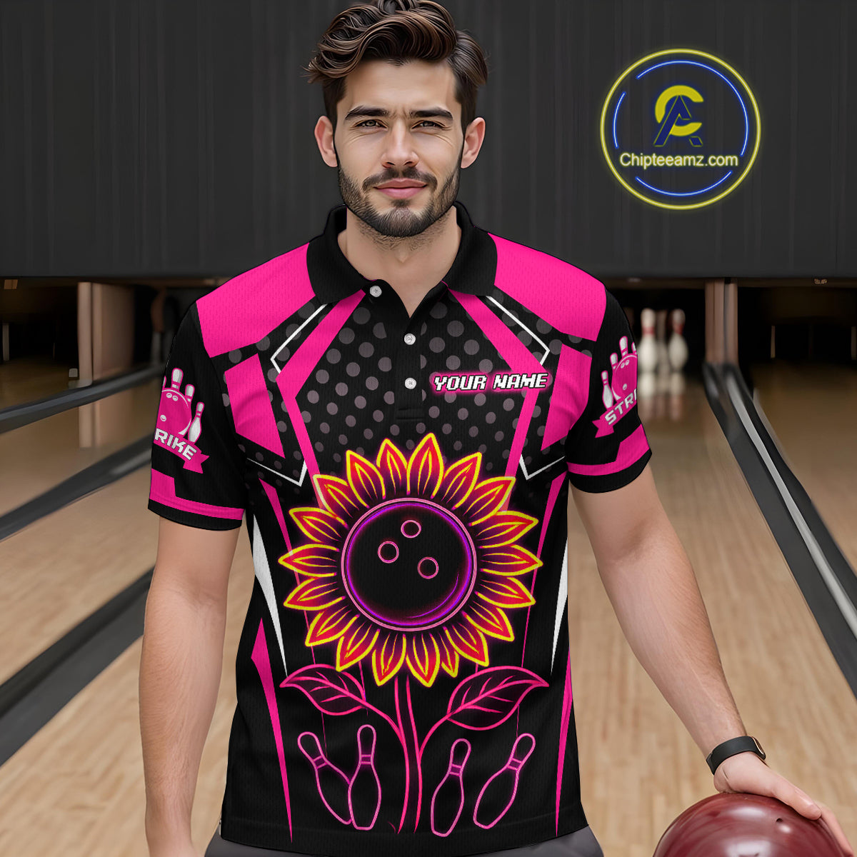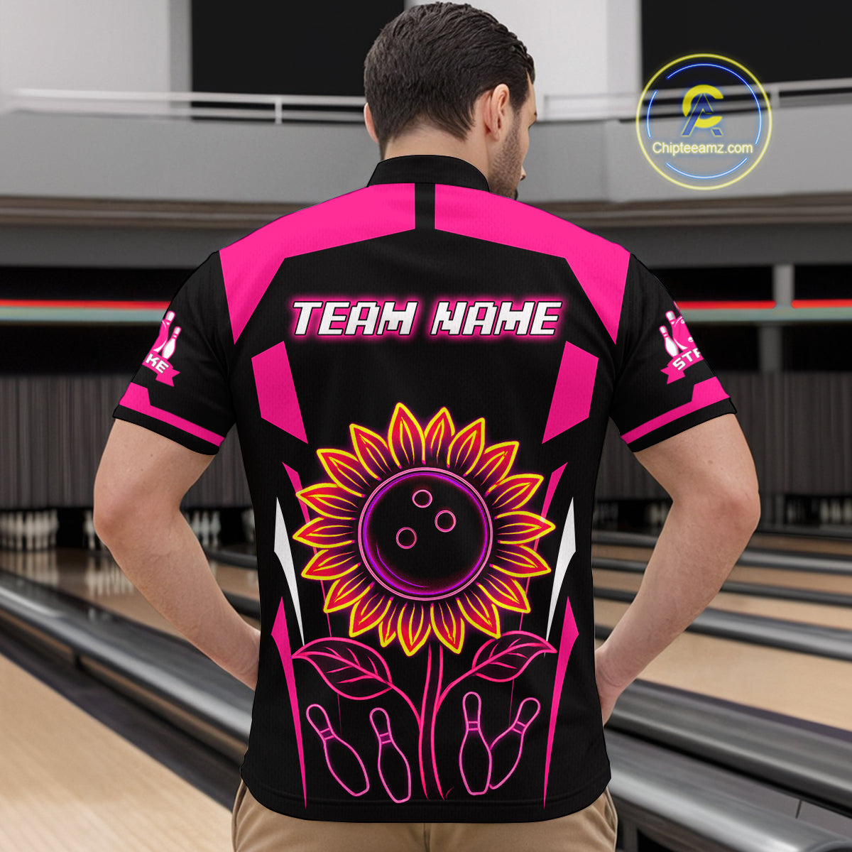 Pink Neon Lightning Sunflower Bowling Shirt for Men Custom Team Bowling Polo Bowling Jersey QZT771