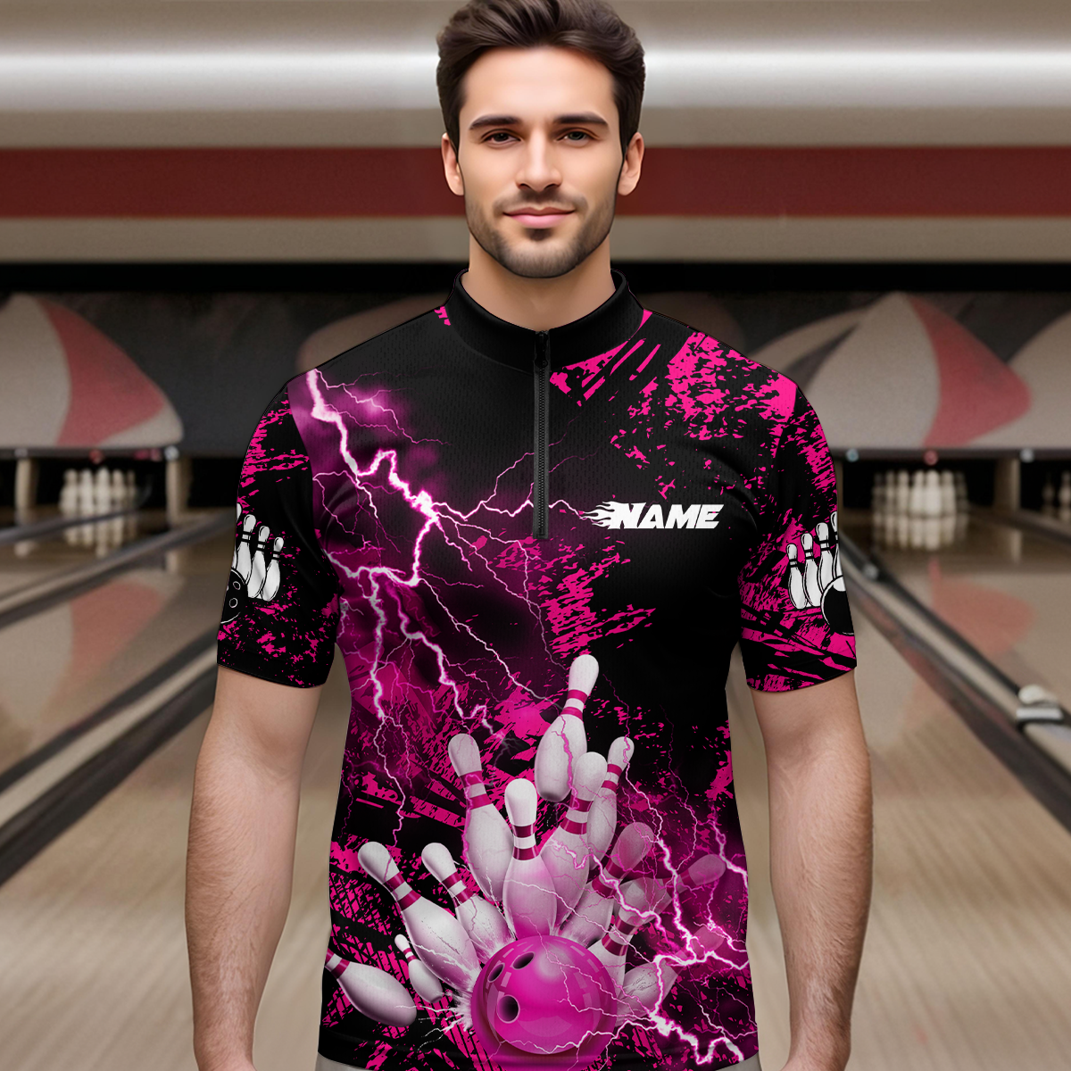 Pink Thunder Lightning Bowling Shirt Custom Colorful Bowling Jersey Men Women Team MBL67