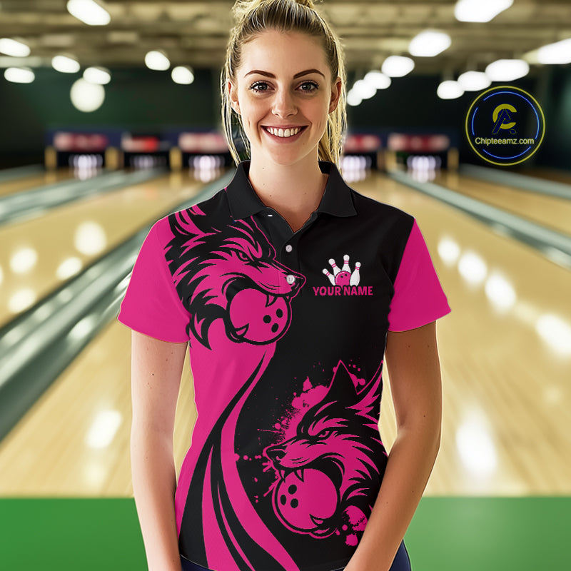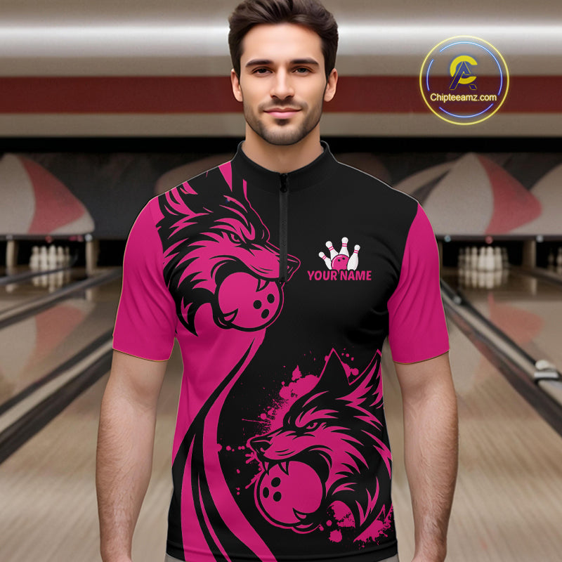 Pink Wolf Bowling Shirts for Team Men Women Custom Wolf Bowling Jerseys for Couples MBL197