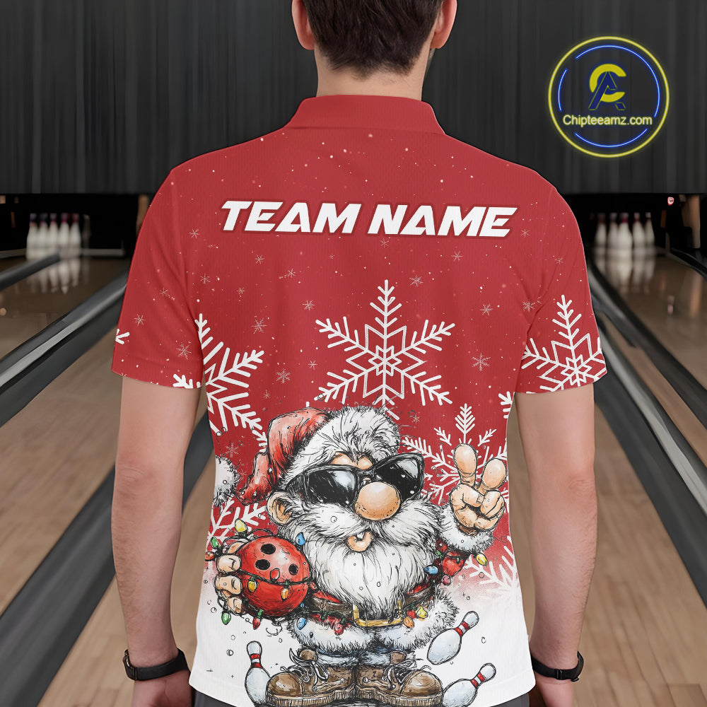 Custom Funny Santa Claus Christmas Bowling Men Polo Shirts, Xmas Bowling Team Shirt IPHW10109