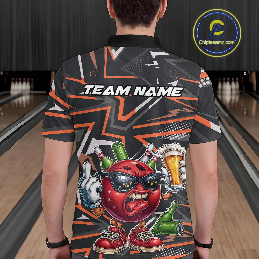 Custom Funny Bowling Ball Drink Beer Bowling Men Polo Shirt, Orange Bowling Team Shirt IPHW10121