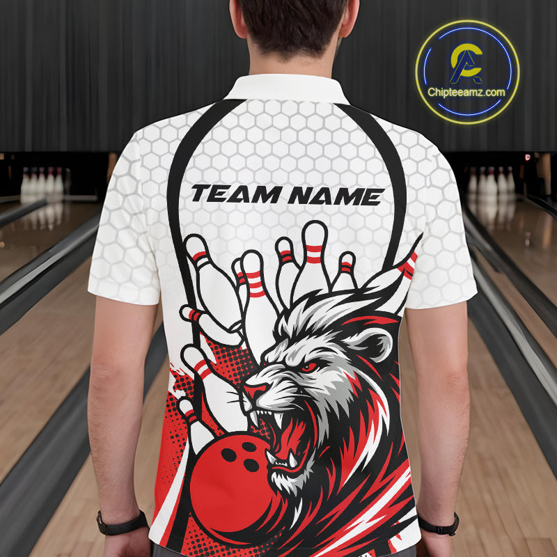 Custom Red Lion Bowling Men Polo Shirt, Lion Bowling Team League Shirt IPHW10124