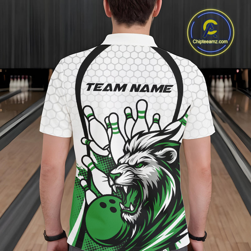 Custom Green Lion Bowling Men Polo Shirt, Lion Bowling Team League Shirt IPHW10127