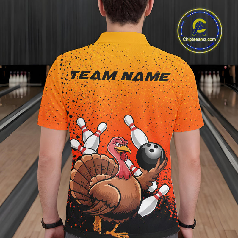 Custom Funny Turkey Bowling Thanksgiving Bowing Outfit Team Polo Shirts For Men IPHW9787