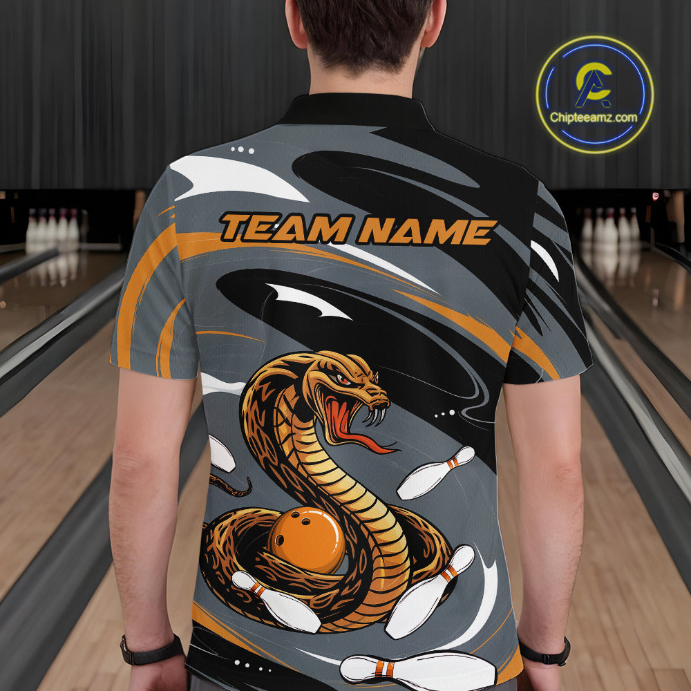 Custom Gray And Yellow Cobra Snake Bowling Polo Shirt For Men, Cobra Bowling Team Jersey IPHW9892