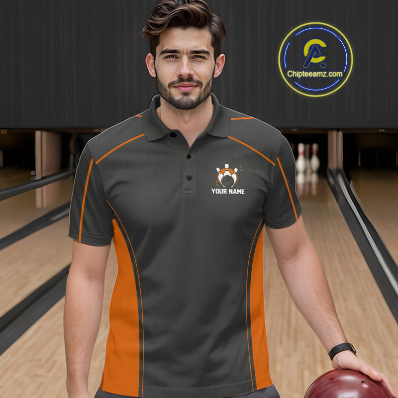 Custom Black And Orange Classic Bowling Team Polo Shirt For Men, Bowling League Shirt IPHW9913