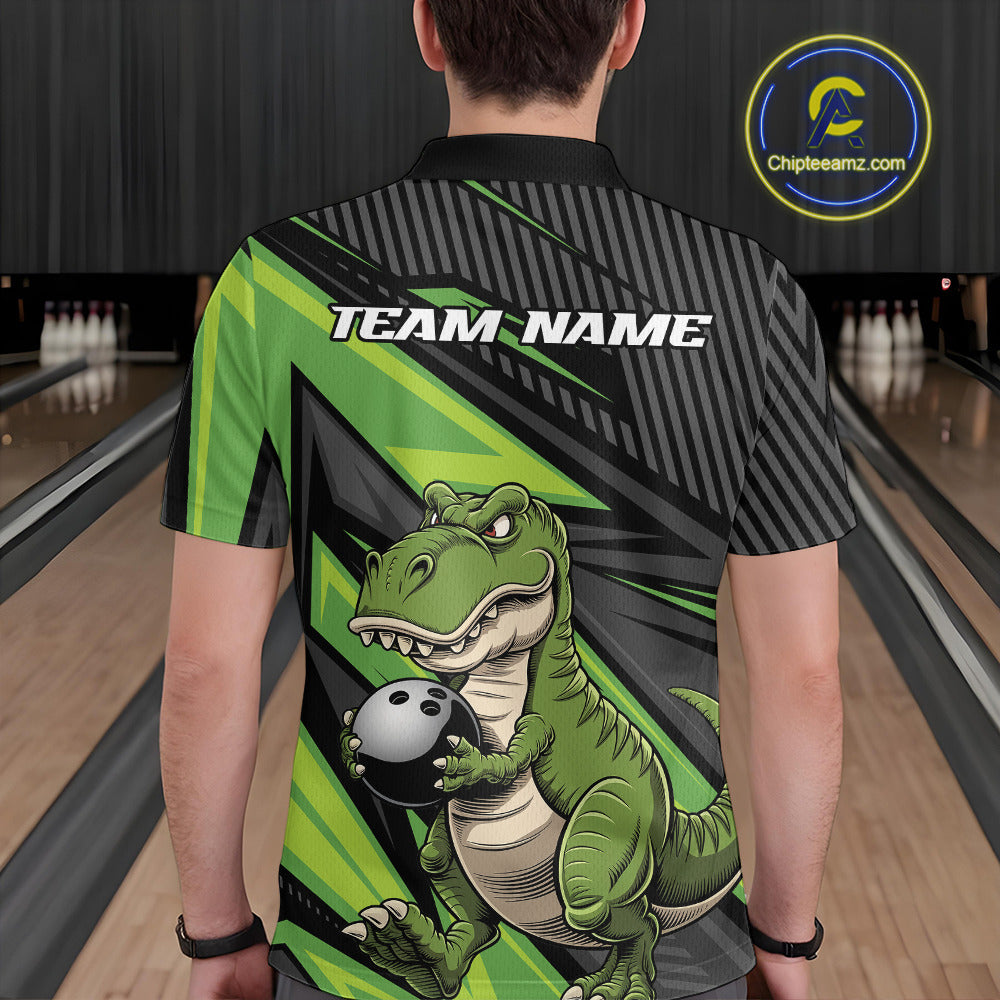 Custom Funny Green Bowling Dinosaur Bowling Men Polo Shirt, Bowling Team Shirt IPHW9927