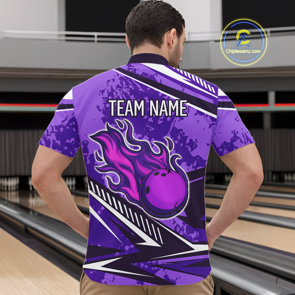 Purple Camo Flame Bowling Shirts For Men Custom Bowling Team Jerseys NQS10754