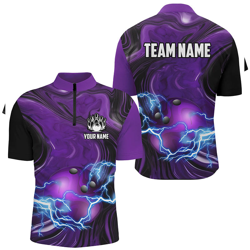 Purple Camo lightning thunder ball bowling Polo, Quarter Zip shirts for men custom bowling team jersey NQS7930