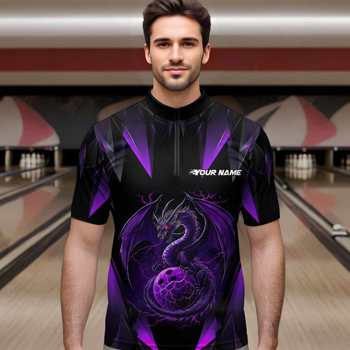 Purple Dragon Personalized Bowling Shirts For Men, Bowling Team Shirt Polo & Quarter-Zip HNT40