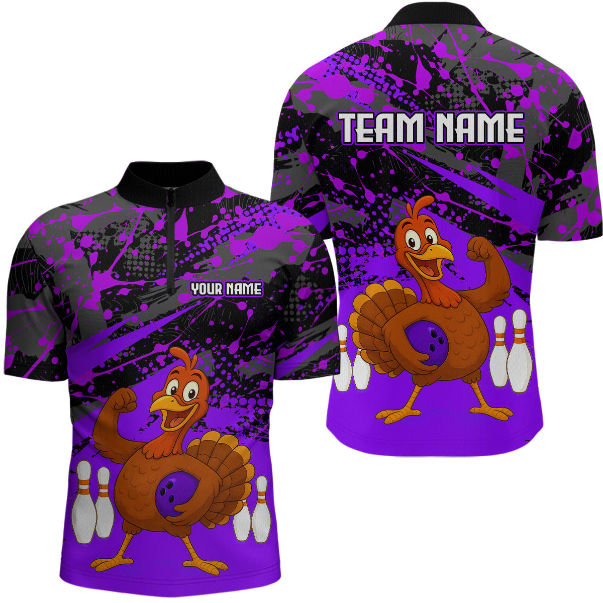 Purple Funny Turkey Bowling Team Shirt for Men Bowling Jersey Thanksgiving Bowling Outfit QZT776