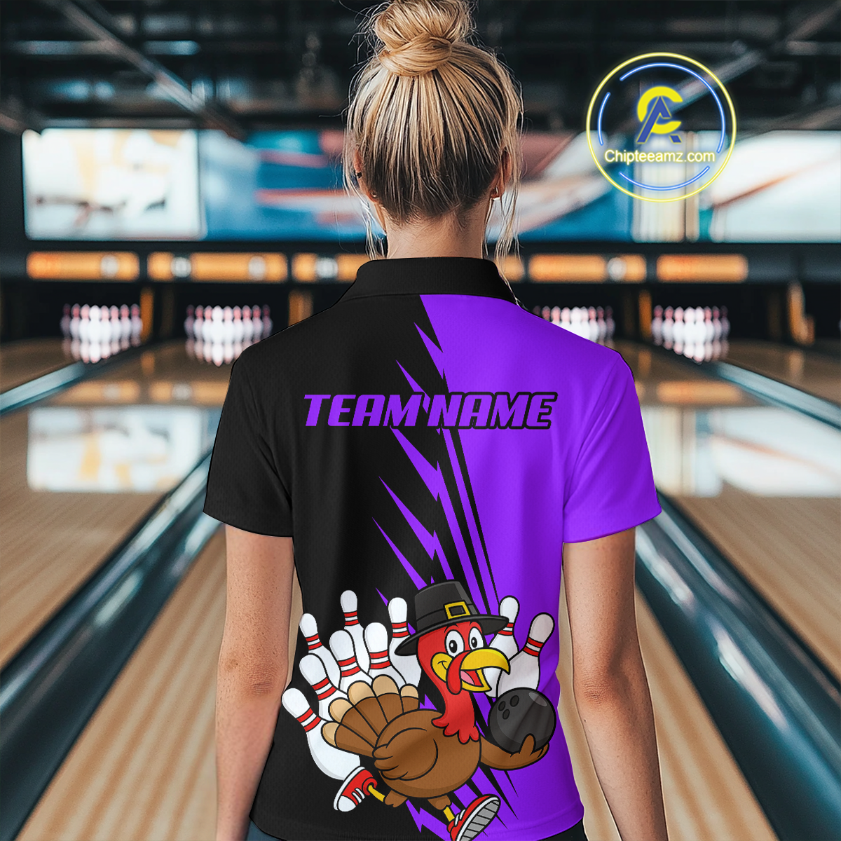 Purple Turkey Bowling Shirts for Women Men Team Custom Bowling Jerseys Thanksgiving MBL180