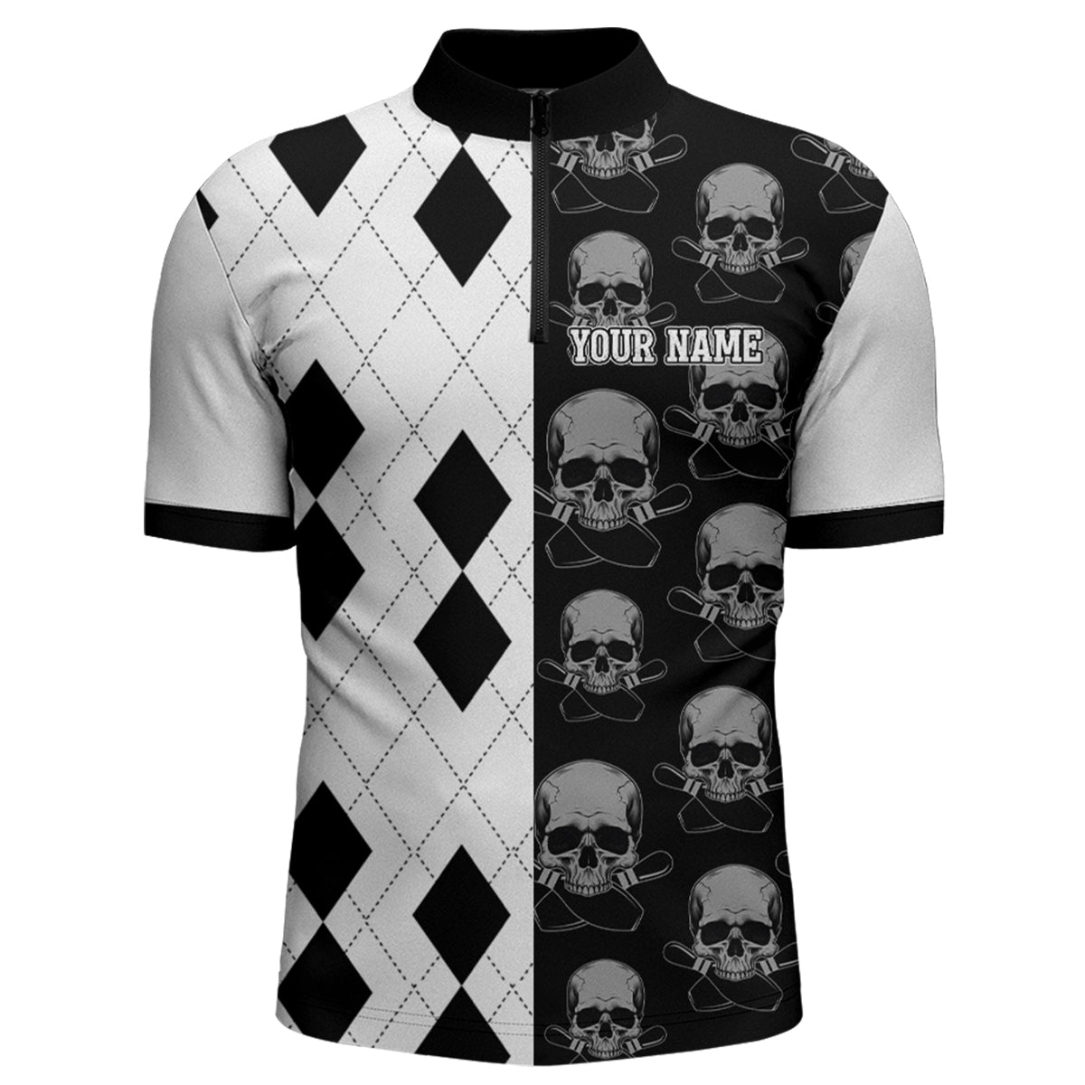 Skull Bowling Jersey Team League Custom Black Bowling Shirt Men Bowling Quarter-Zip Shirt BDT347