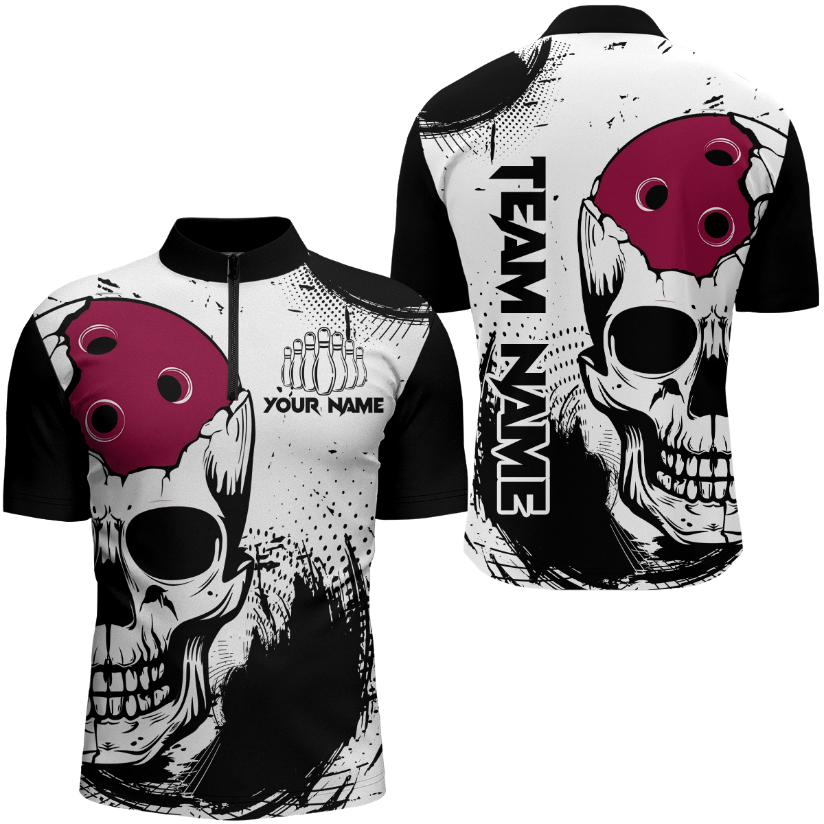 Skull Bowling Shirt for Men Custom Bowling Jersey Bowling 1/4 Zip Shirt Bowling Team League QZT293