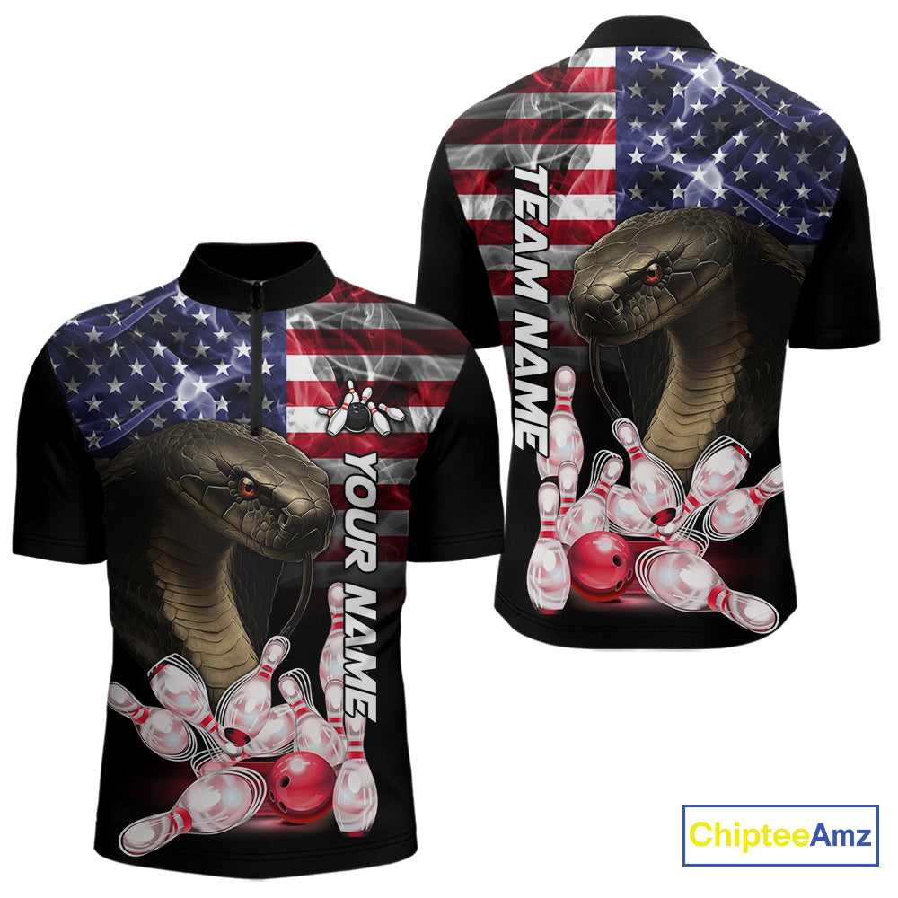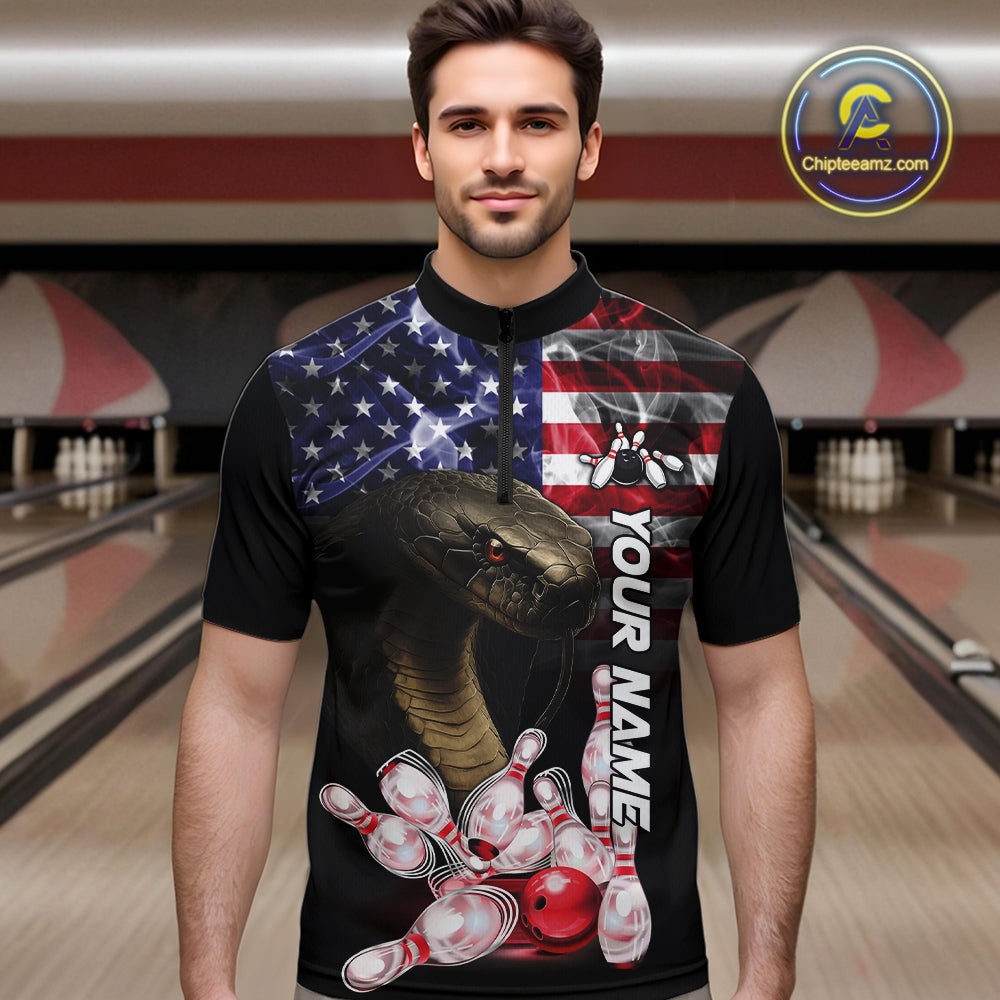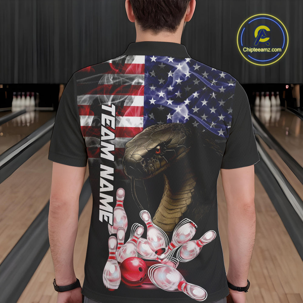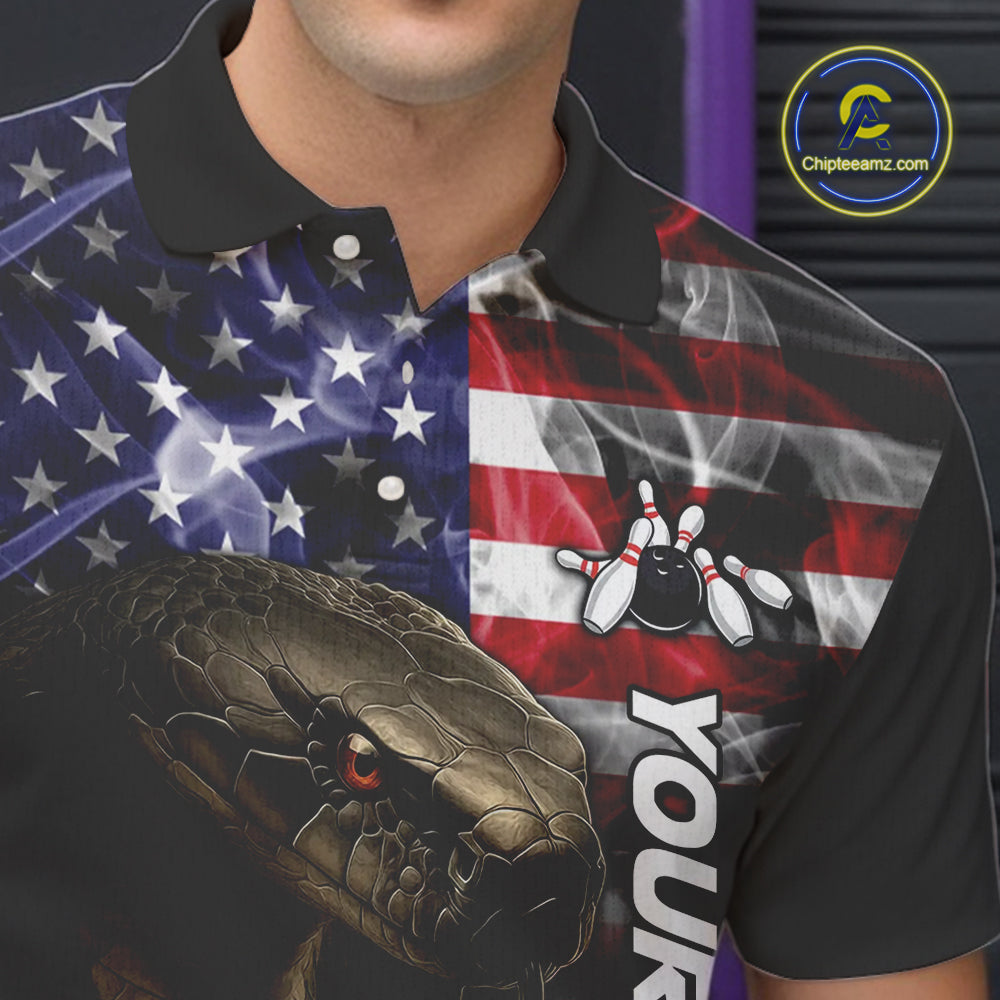 Smoke American Flag Cobra Snake Bowling Shirts for Men Custom patriotic Team Bowling jerseys NQS10286