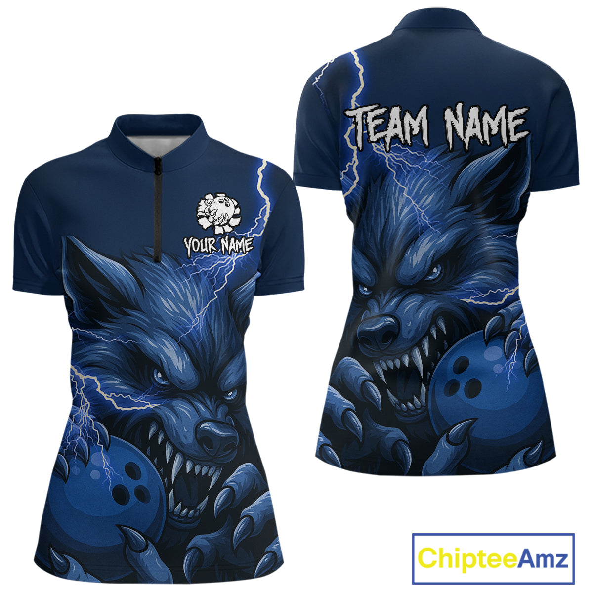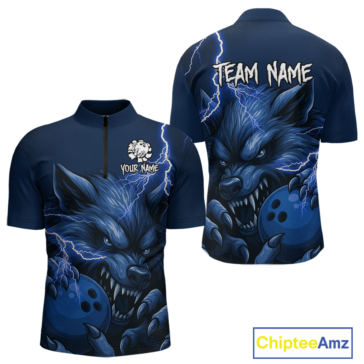 Wolf Bowling Shirts for Team Women Men Custom Blue Wolf Bowling Polo and 1/4 Zip MBL191