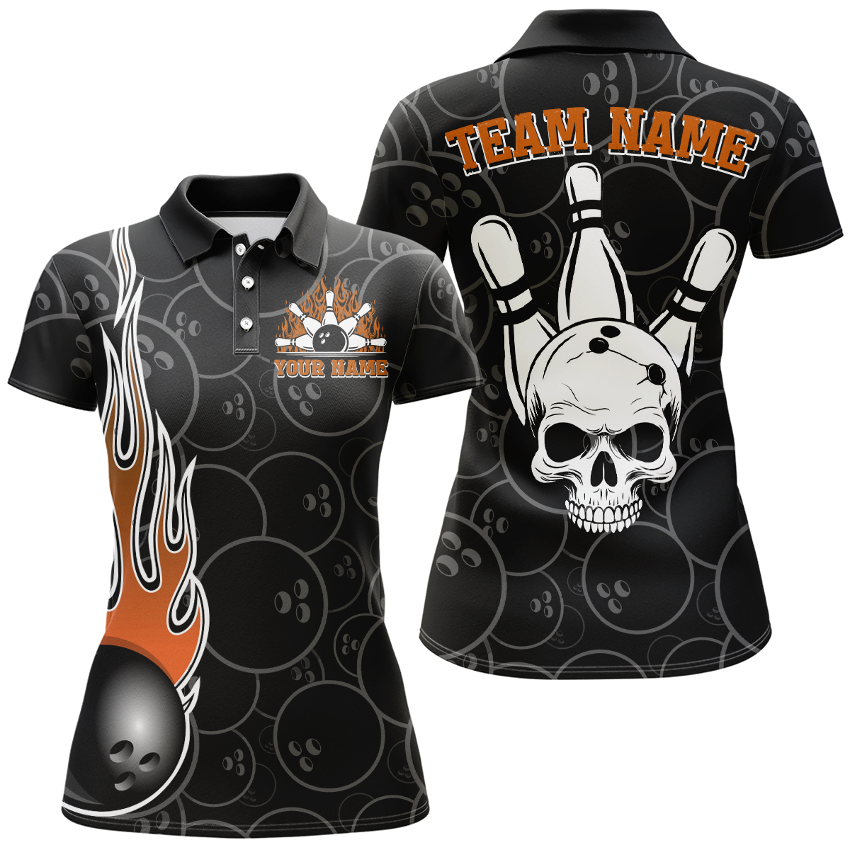 Women Skull Bowling Jersey Custom Bowling Team Shirts Unisex Bowling Women Short Sleeve Polo Shirt CP30
