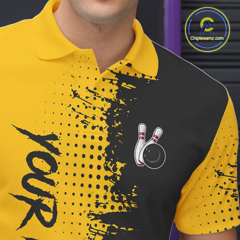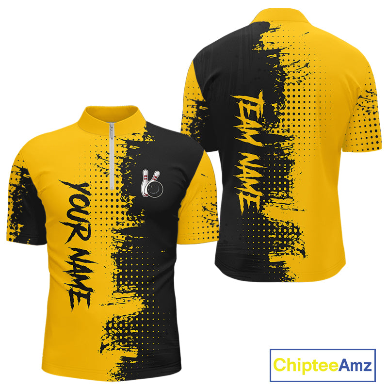 Yellow and Black Bowling Polo, Quarter Zip shirts for Men Custom Bowling Team Jerseys NQS10880