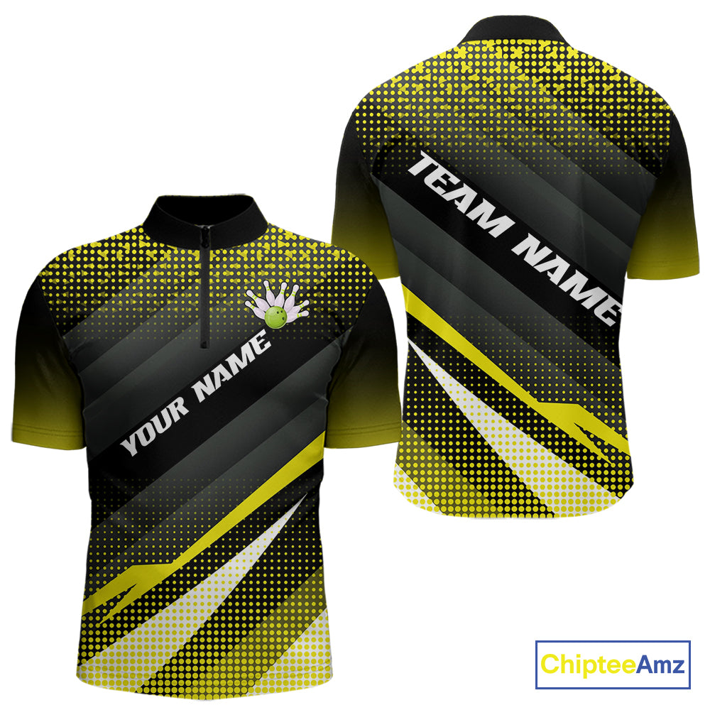 Yellow Bowling Custom Men Bowling Polo, Quarter zip Shirts Bowling Team Jerseys Bowling Tournament NQS10605