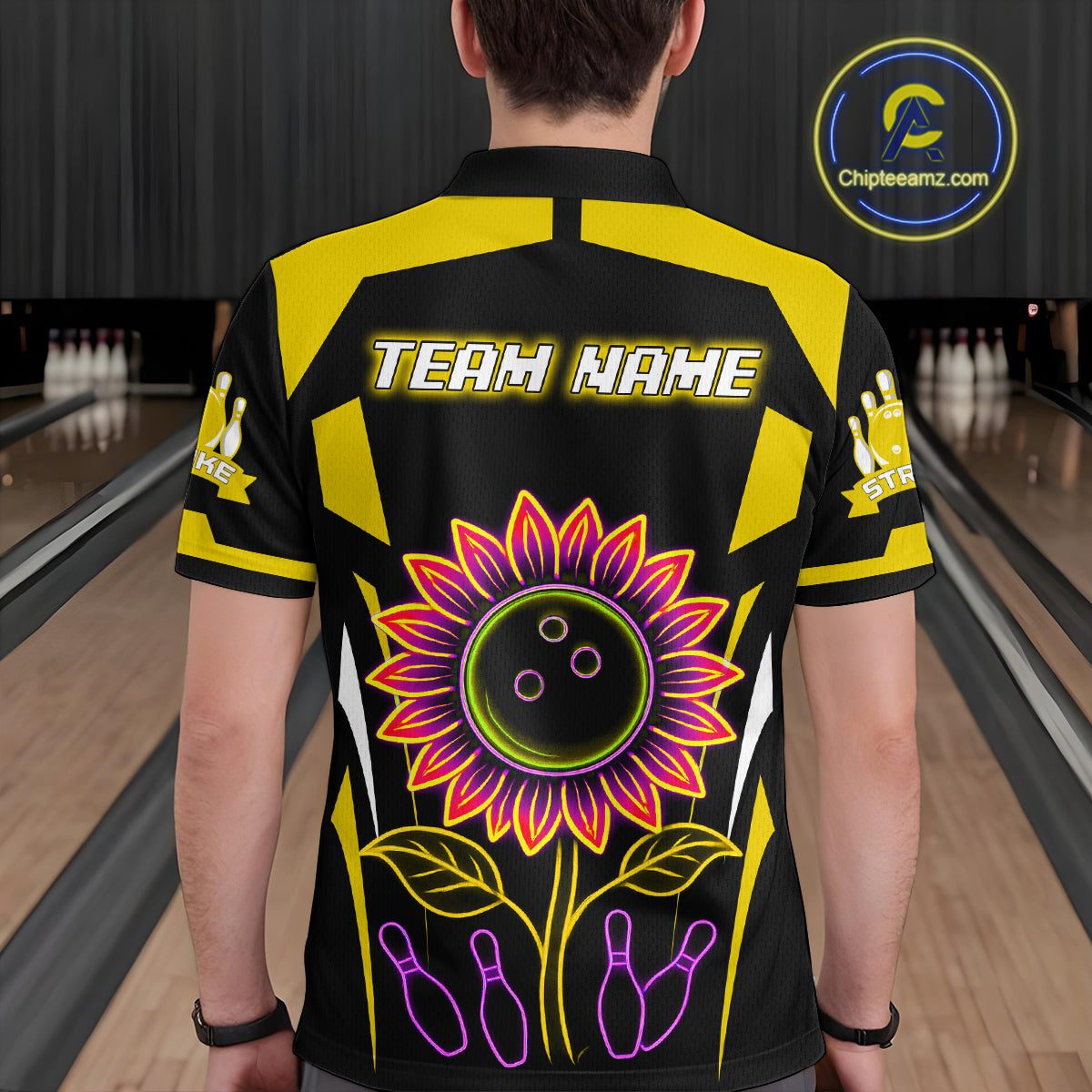 Yellow Neon Lightning Sunflower Bowling Shirt for Men Custom Team Bowling Jersey QZT771