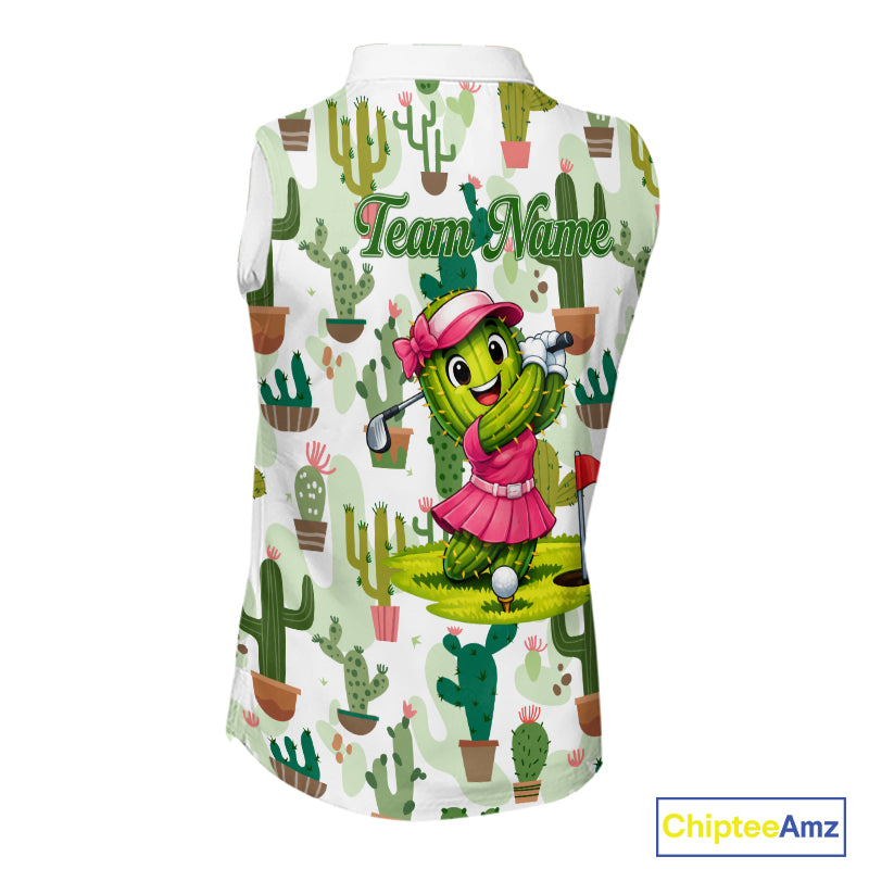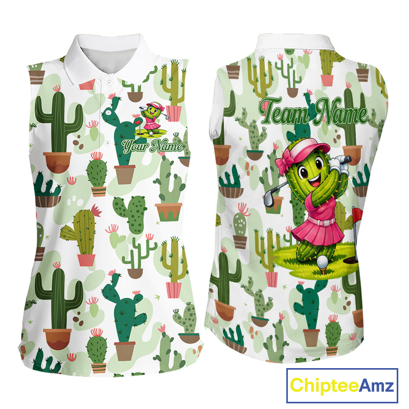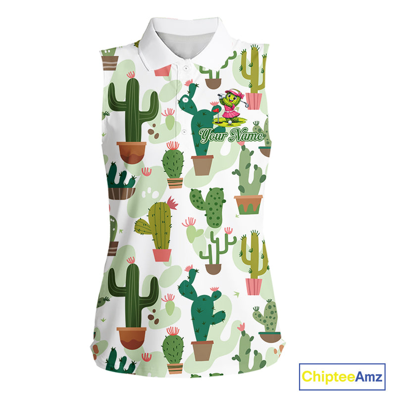 Funny Cactus Flower Womens Sleeveless Golf Polo Shirt Custom Name Golf Tops, Cactus Golf Shirt NHN0237