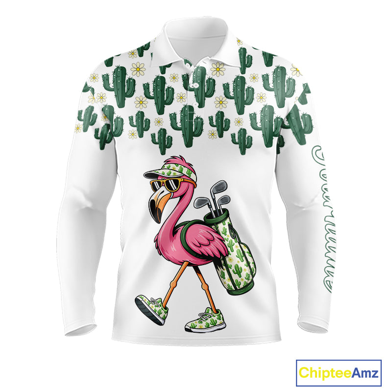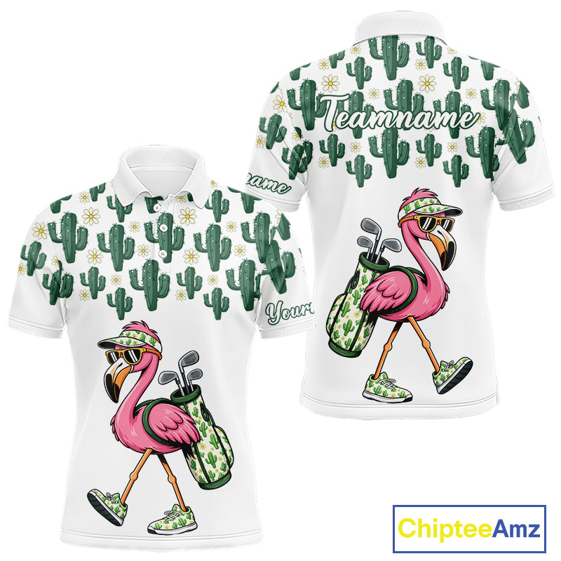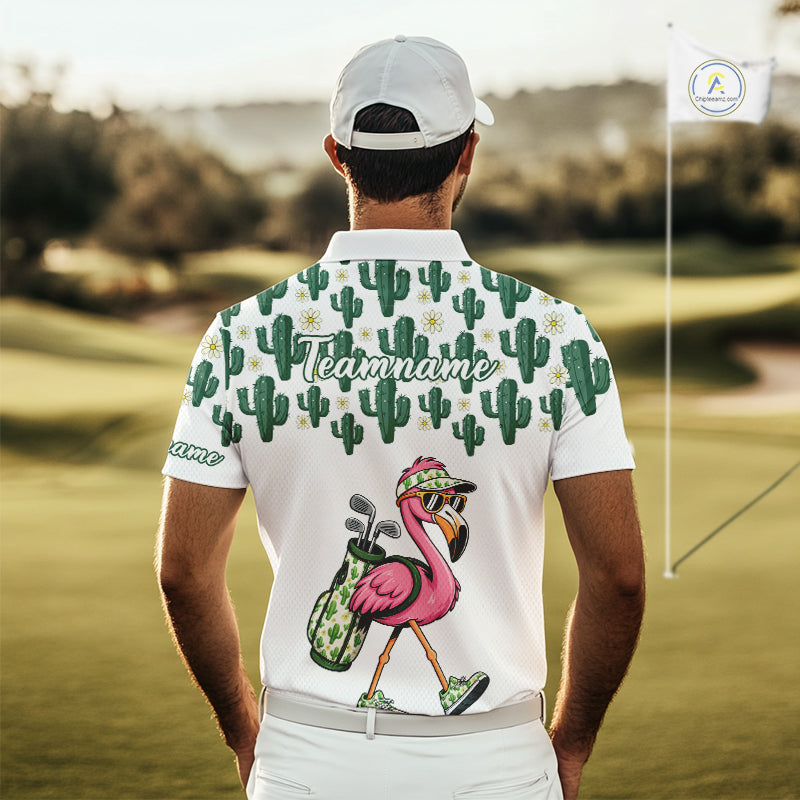 Personalized Green Cactus Flower Pattern Mens Golf Polo Shirts Custom Funny Flaming Golf Shirt NYN2837