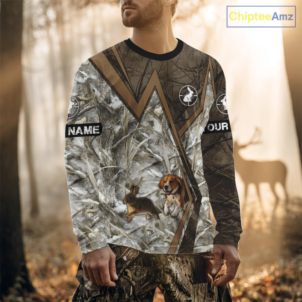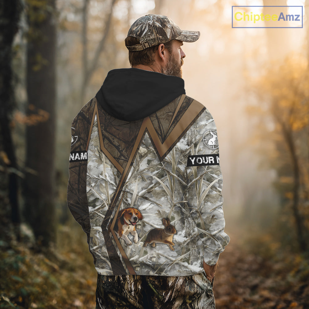 Beagle Dog Chasing the Rabbit Camo Custom Name Shirts, Rabbit Hunting Gifts NHT283