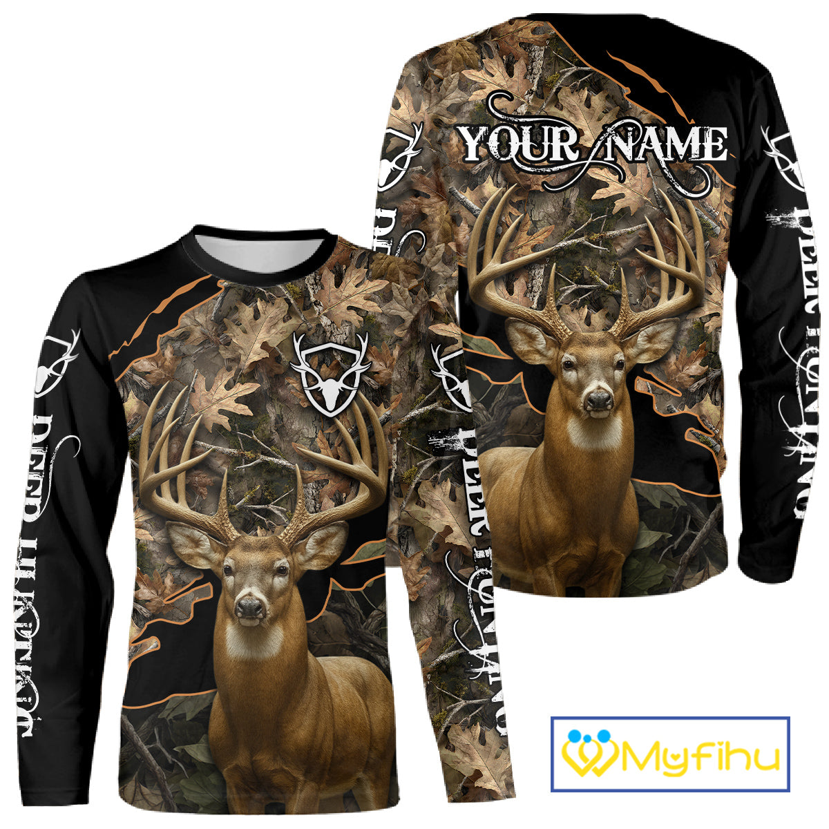 Inspired by the thrill of the hunt and the beauty of the outdoors, this shirt combines durability, comfort, and a unique hunting vibe. Customize it with your name or preferred design elements — from deer graphics to scenic landscapes — to create a one-of-a-kind piece. A perfect gift for passionate deer hunters and outdoor lovers, especially during hunting season.