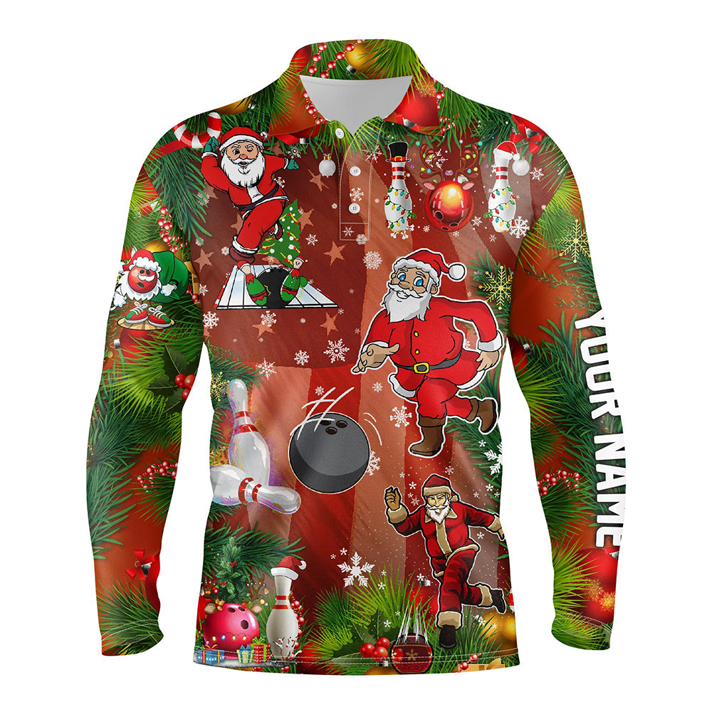 American flag Santa Christmas Bowling Shirts For Men Team League Jerseys Custom Bowling Polo Shirts NQS6540