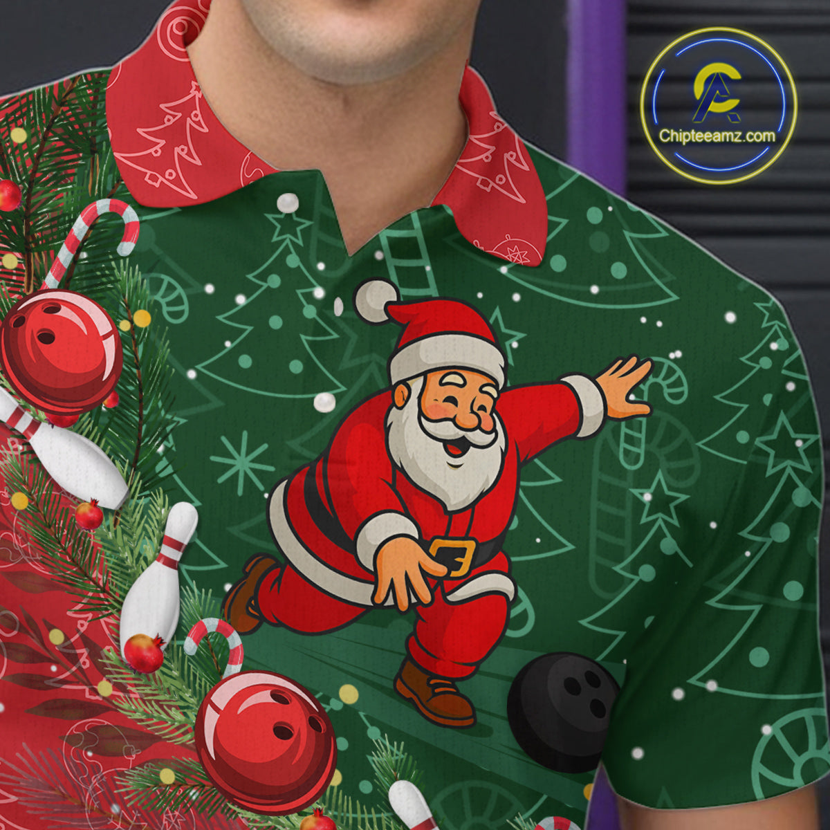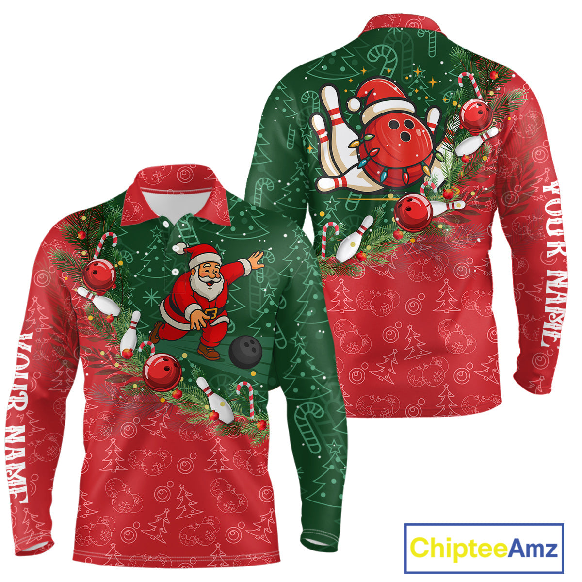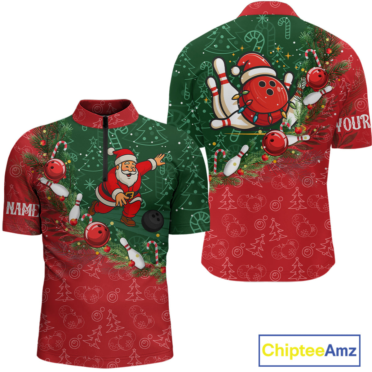 Christmas Santa Mens Bowling Polo, Quarter Zip Shirt Custom Christmas Team Bowling outfit For Men NQS10342