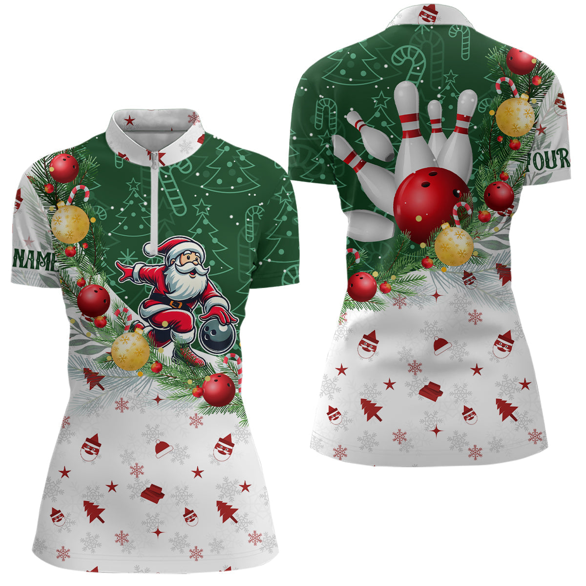 Christmas Santa Playing Bowling Womens Polo, Quarter Zip shirts Custom Christmas Team Bowling Jerseys NQS9068