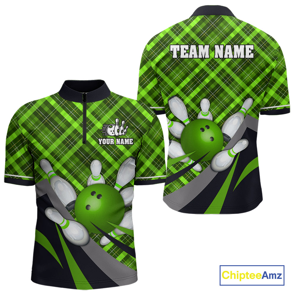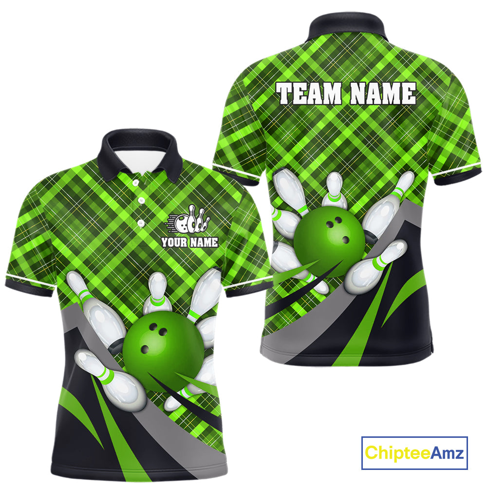 Green Plaid Christmas pattern Bowling shirts For Men Custom Team Bowling Jersey Xmas Gift For Bowlers NQS10492