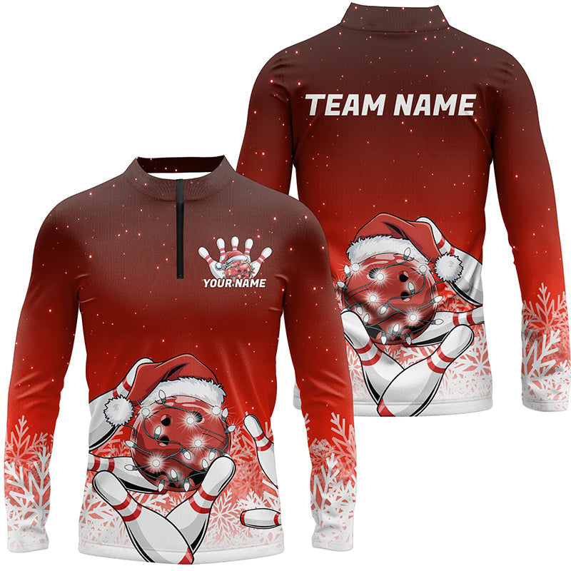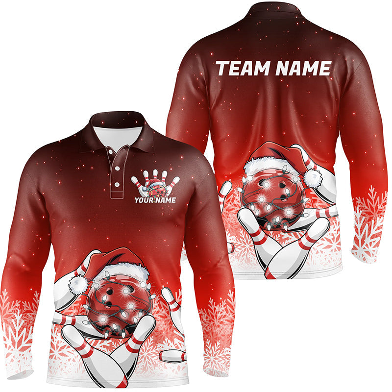 Red Christmas Snowflake Custom Bowling Shirts For Men, Christmas Bowling League Shirt Outfit IPHW7852