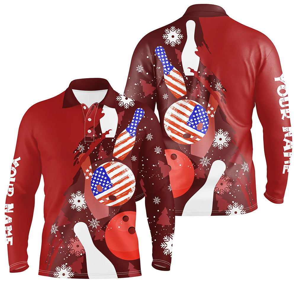 Personalized Christmas American flag Bowling Polo Shirts For Men custom red bowling team jerseys NQS6805