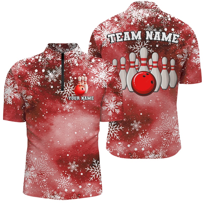 Red Snowflake Christmas pattern Men's Bowling shirt Custom Christmas Team Bowling League Jersey NQS8855