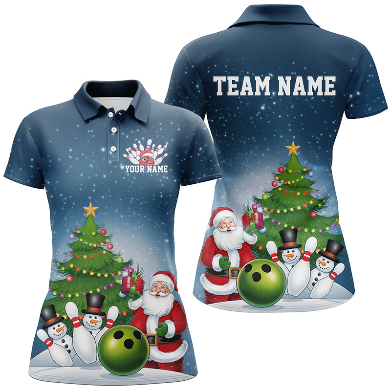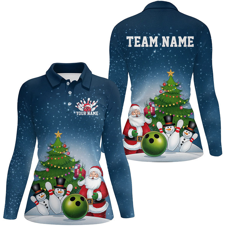Custom Christmas Ladies Bowling Shirts, Funny Santa Bowling Tournament Shirt Bowler Gift IPHW7977
