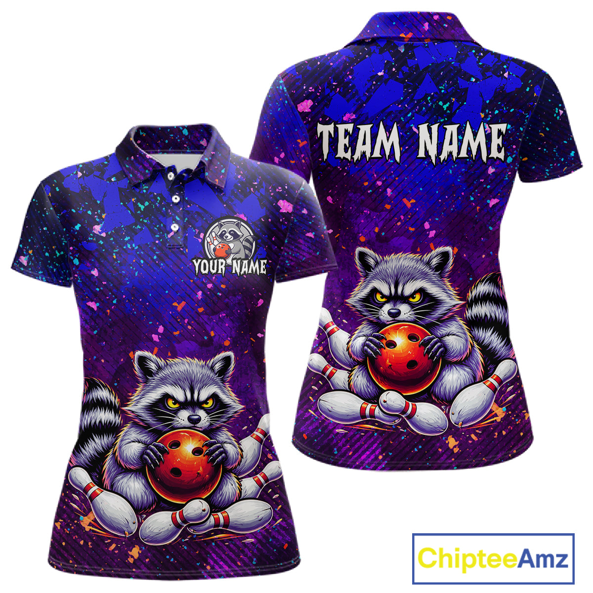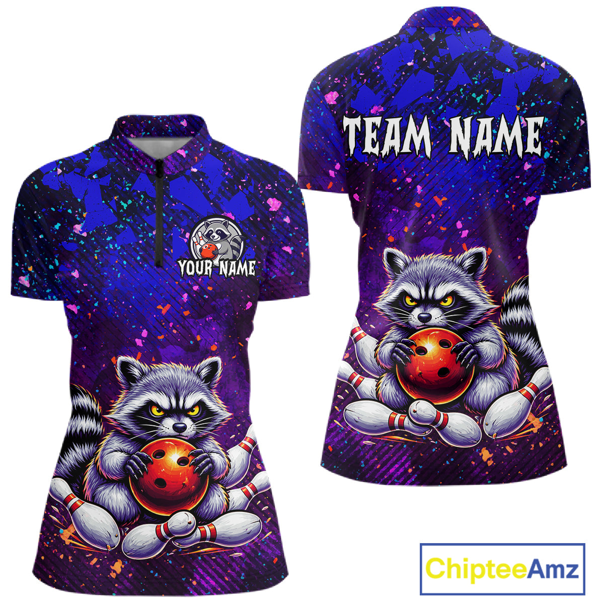 Custom Funny Raccoon Bowling Jersey for Women Bowling Tournament Polo & 1/4 Zip Bowling Team Shirts HNT216