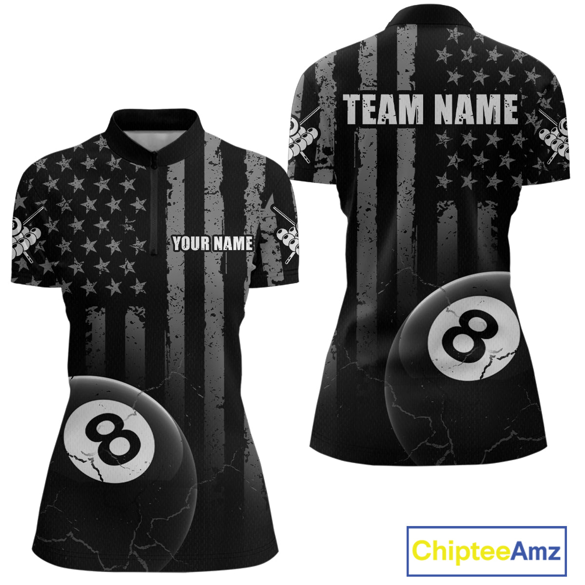 Custom American Flag 8 Ball Billiard Shirts for Women, Billiard Team Polo & 1/4 Zip Shirts NNT64