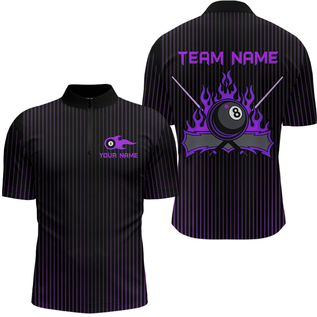 Custom Purple 8 Ball Flame Billiard Shirts for Men, Billiard Team Polo & 1/4 Zip Shirts NNT62