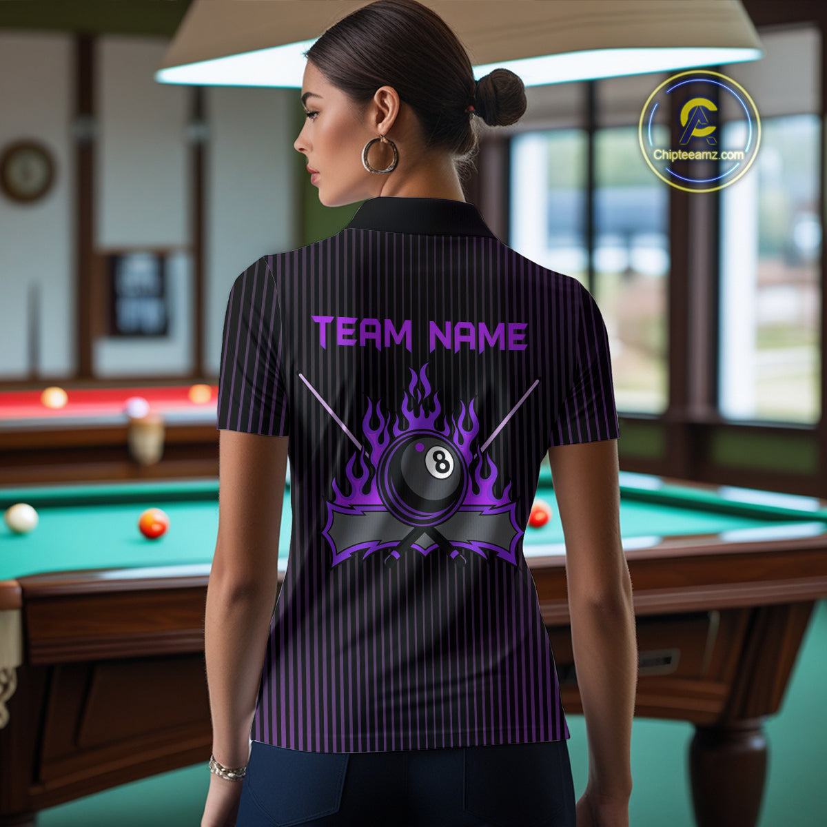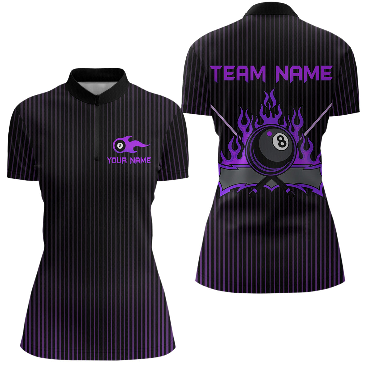 Custom Purple 8 Ball Flame Billiard Shirts for Women, Billiard Team Polo & 1/4 Zip Shirts NNT62