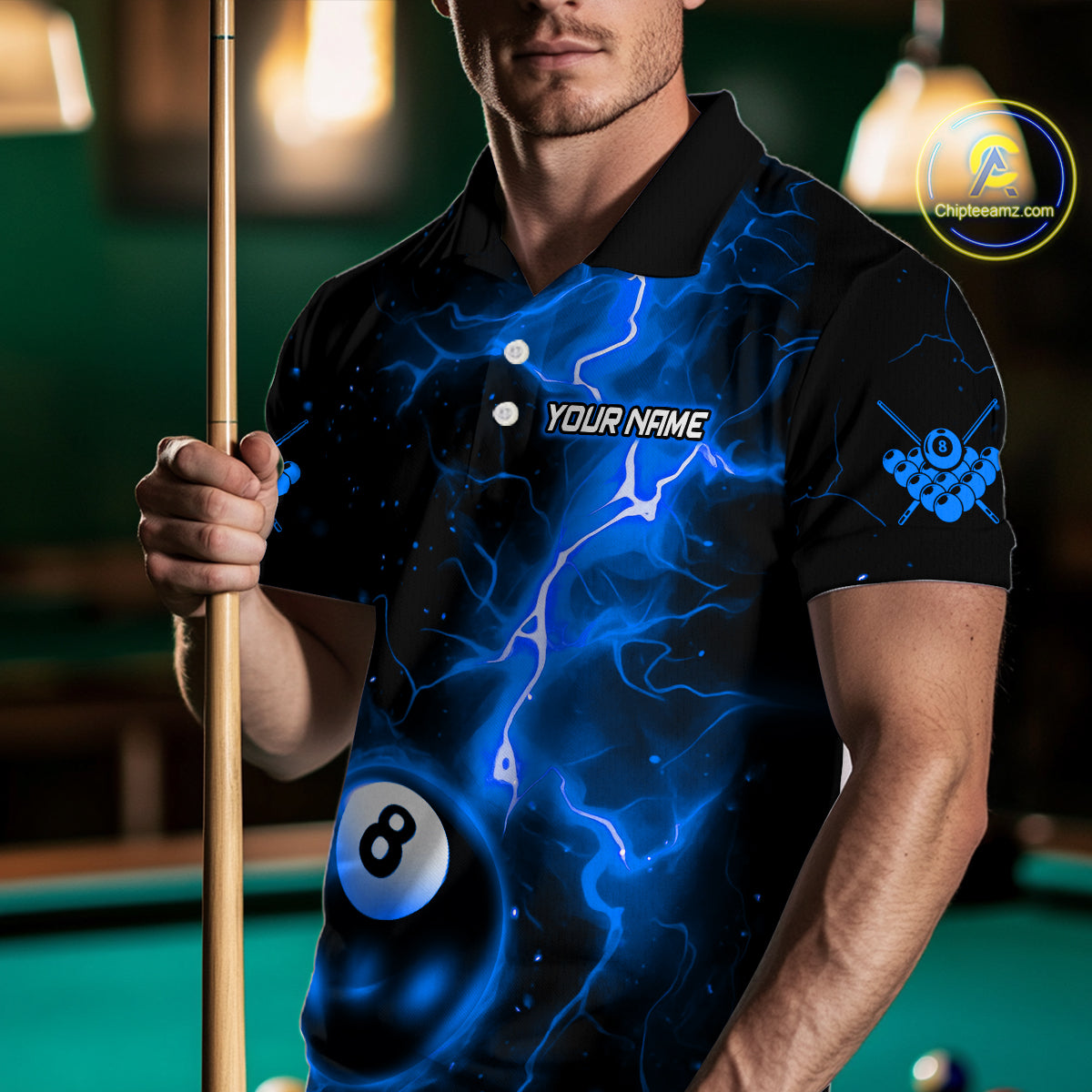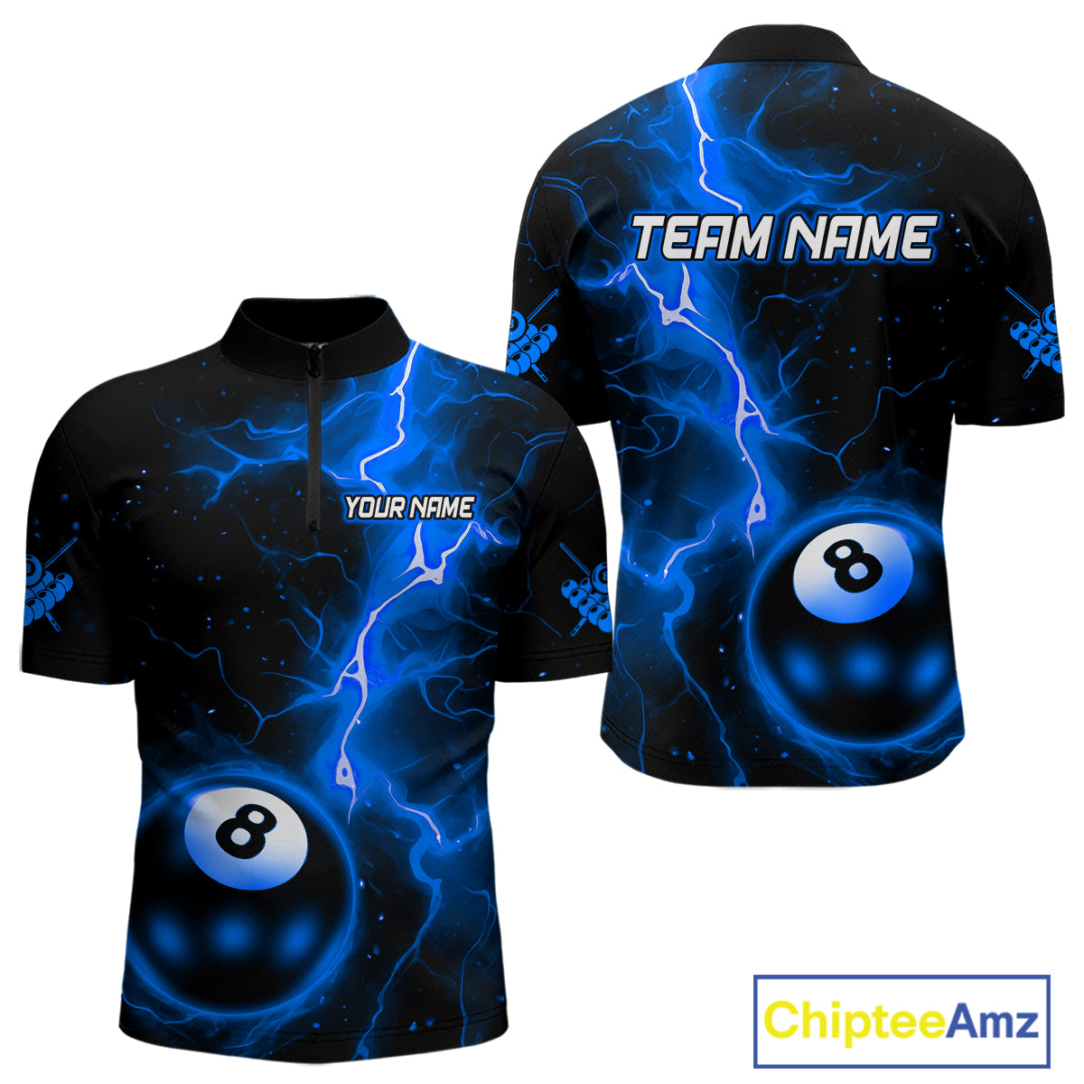Blue And Black 8 Ball Striking Thunder Lightning Billiard Shirt For Men Custom Pool Team Jerseys TDM4389