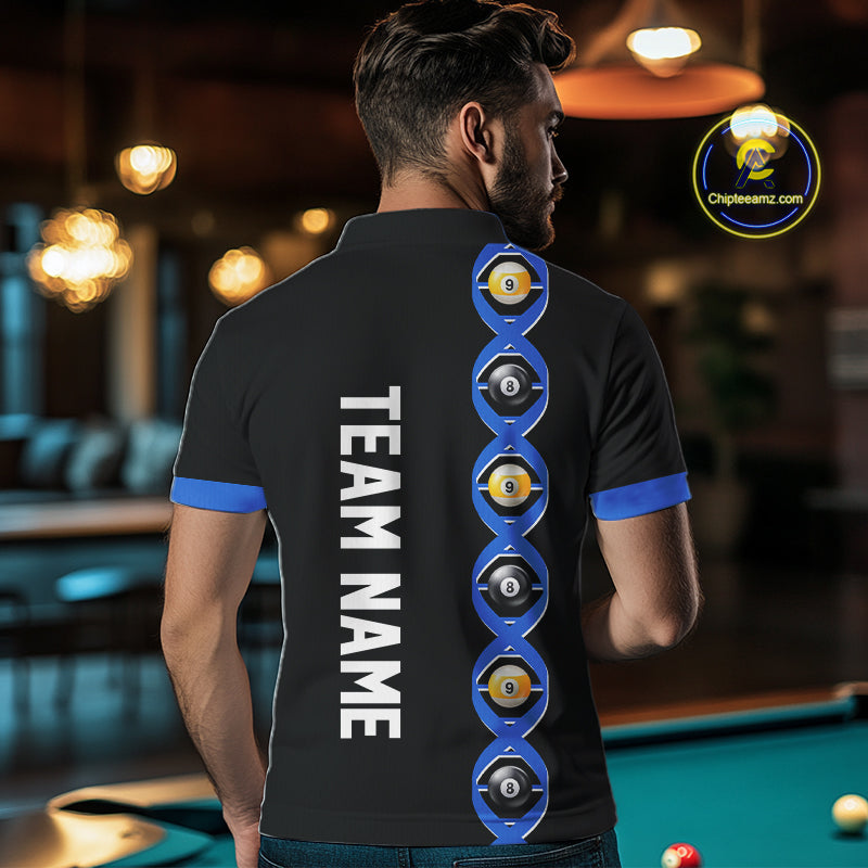 DNA Billiard 8 Ball & 9 Ball Shirts For Men Custom Funny Pool Jerseys Team Polo & 1/4 Zip |Blue TDM4391