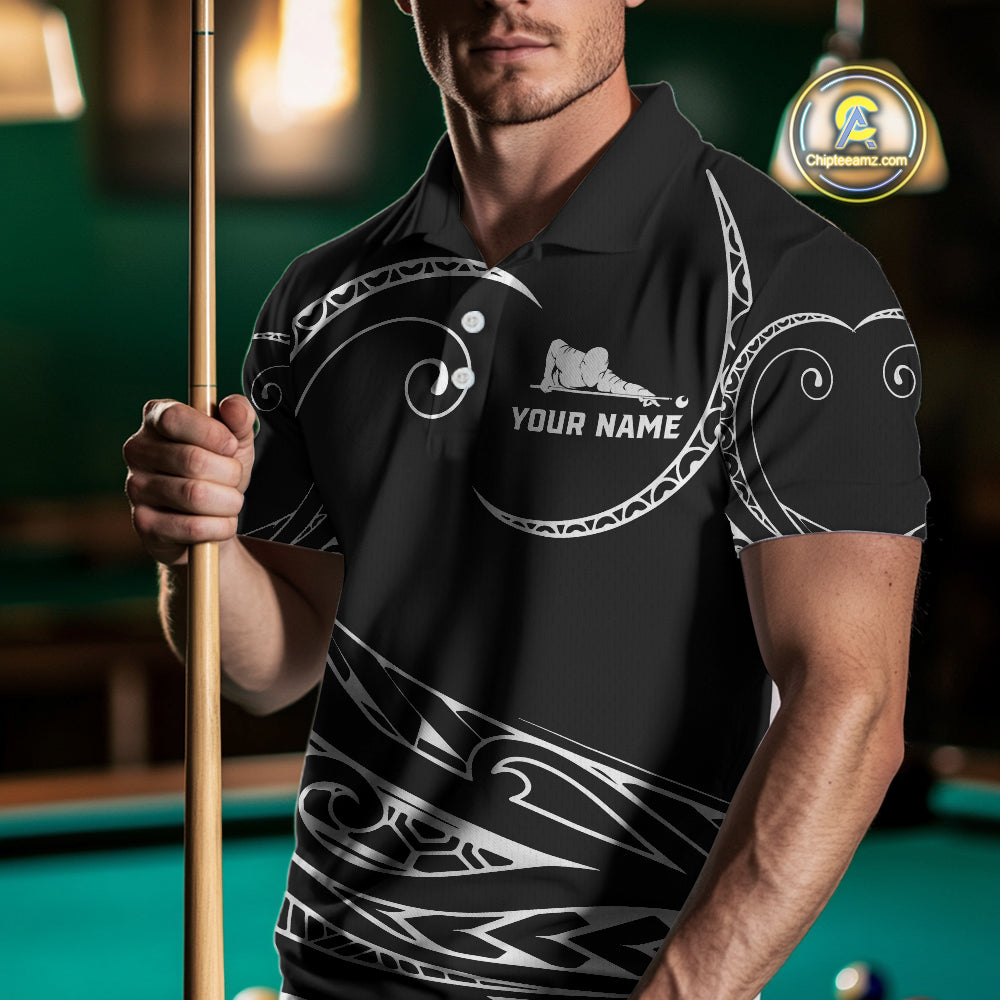 Black White 8 Ball Pool Tribal Billiard Shirt For Men Custom Billiard Team Jersey Polo & 1/4 Zip TDM4411