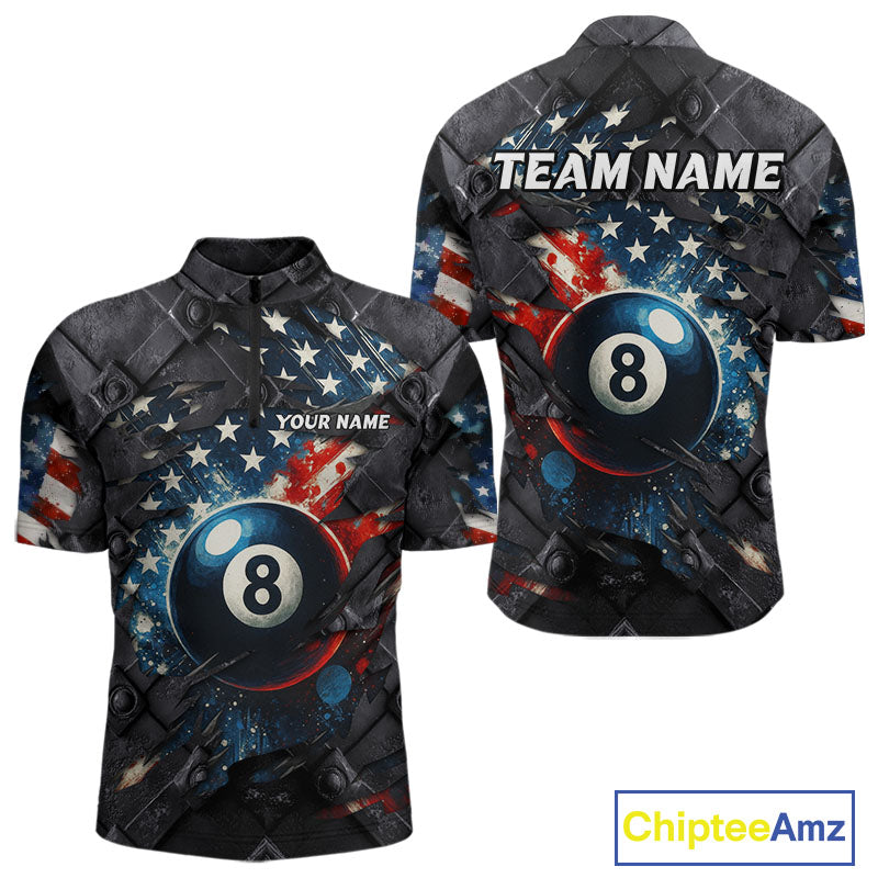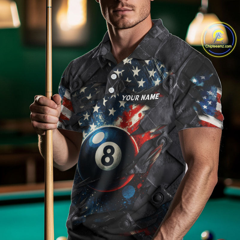 Personalized Grunge American Flag 8 Ball Billiard Shirt For Men Custom Patriotic Pool Team Jersey TDM4419