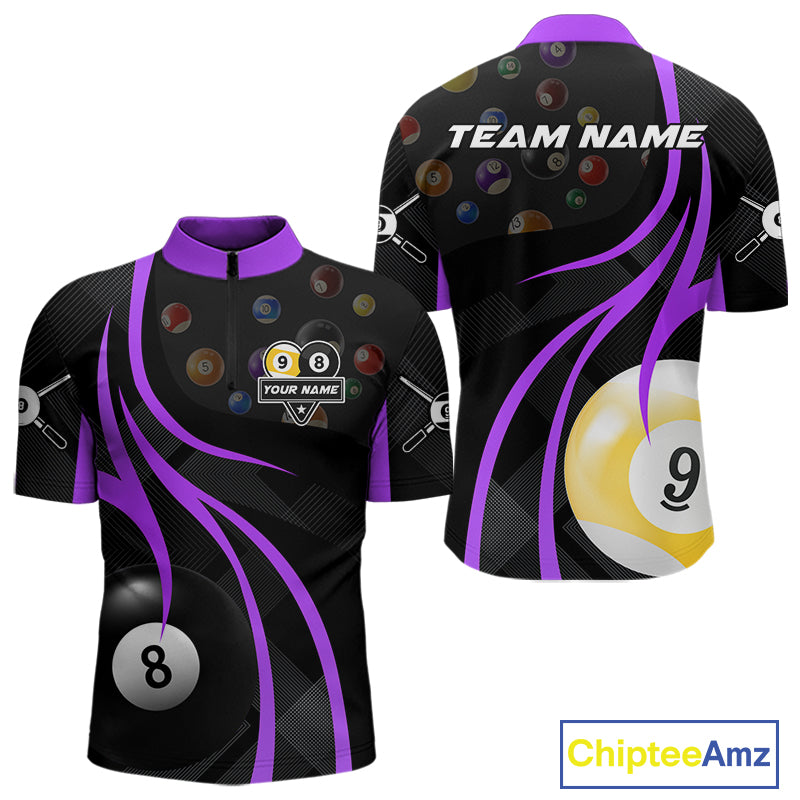 Customized Billiard 8 Ball & 9 Ball Pool Shirt For Men, Billiard Team Jersey Polo & 1/4 Zip|Purple TDM4458