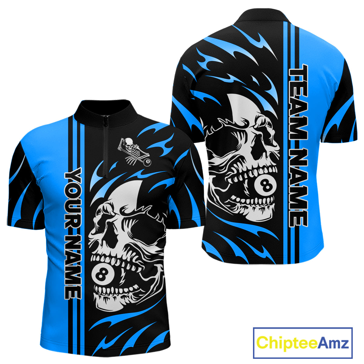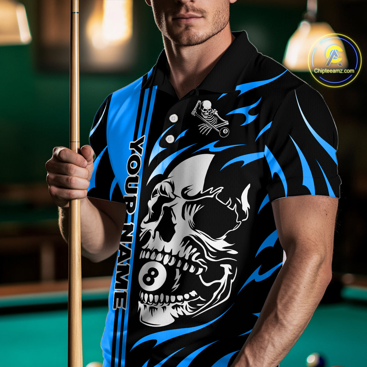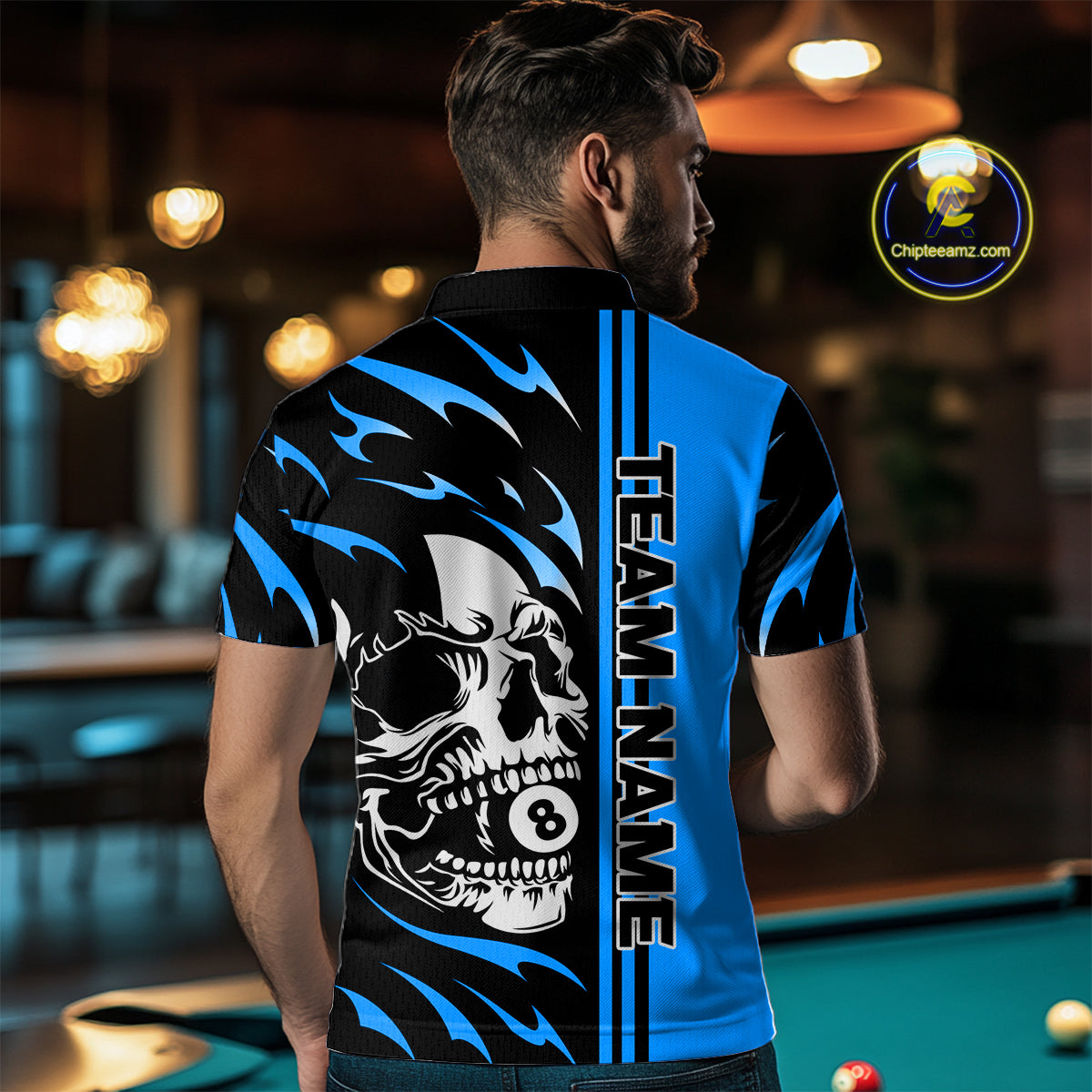 Personalized Blue 8 Ball Skull Billiard Shirt For Men Custom Pool Team Jersey, Billiard Outfit TDM4460